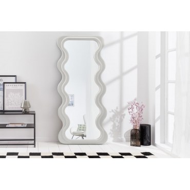 Nowoczesne lustro CURVY to wyjątkowy dodatek, który przyciąga wzrok dzięki swojemu oryginalnemu, falistemu kształtowi. Jego designerska rama w kolorze białym nadaje wnętrzu świeżości, lekkości i modnego charakteru. Duży rozmiar (160 cm wysokości) sprawia, że idealnie sprawdzi się zarówno jako praktyczne lustro do przedpokoju, jak i efektowna dekoracja w salonie, sypialni czy garderobie.