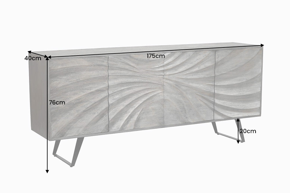 Komoda / sideboard PEACOCK 175 cm – lite drewno mango / front 3D / 45791