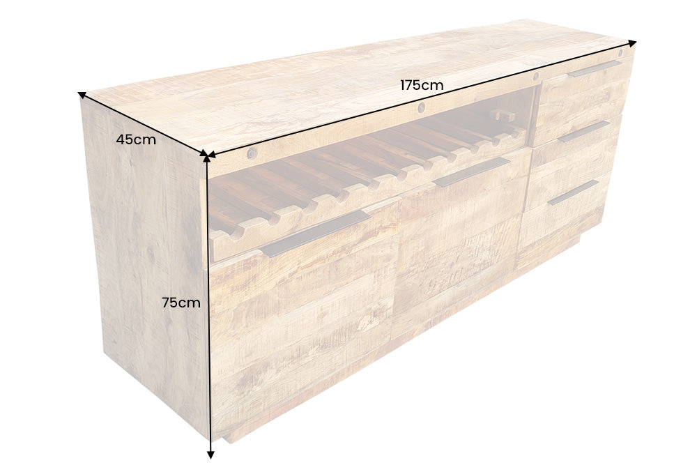 Komoda IRON CRAFT 175 cm – mango natural / stojak na wino / 44184