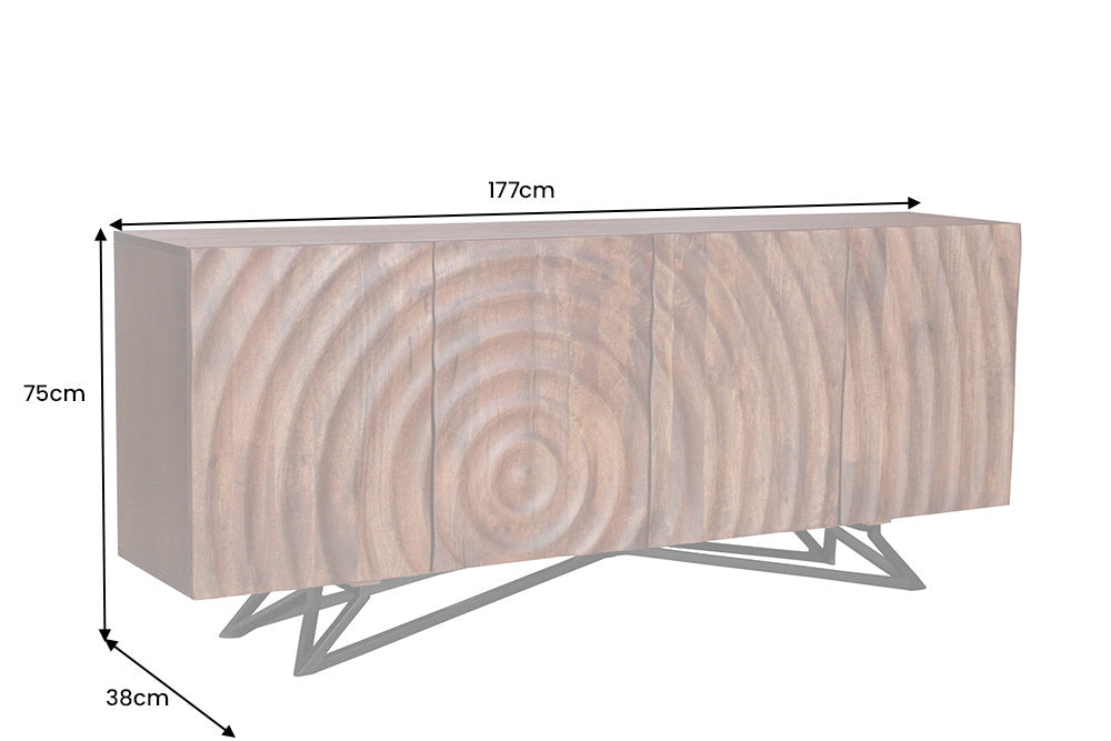 Komoda ZEN CIRCLE 177 cm – lite drewno mango / front 3D / czarno-brązowa 44580