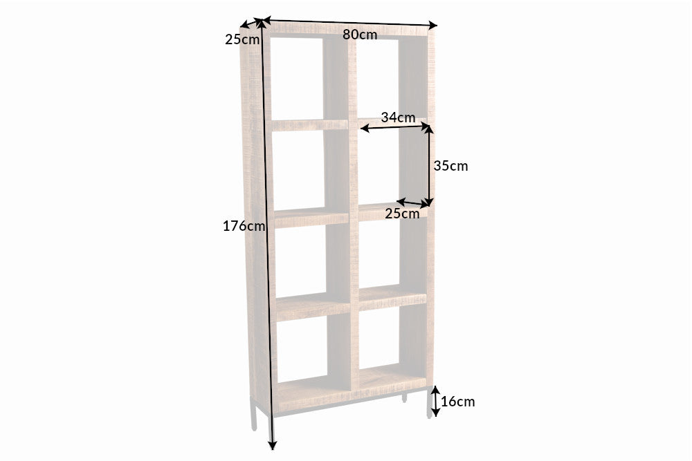 Regał IRON CRAFT 180×80 cm – lite drewno mango / metal / 42377