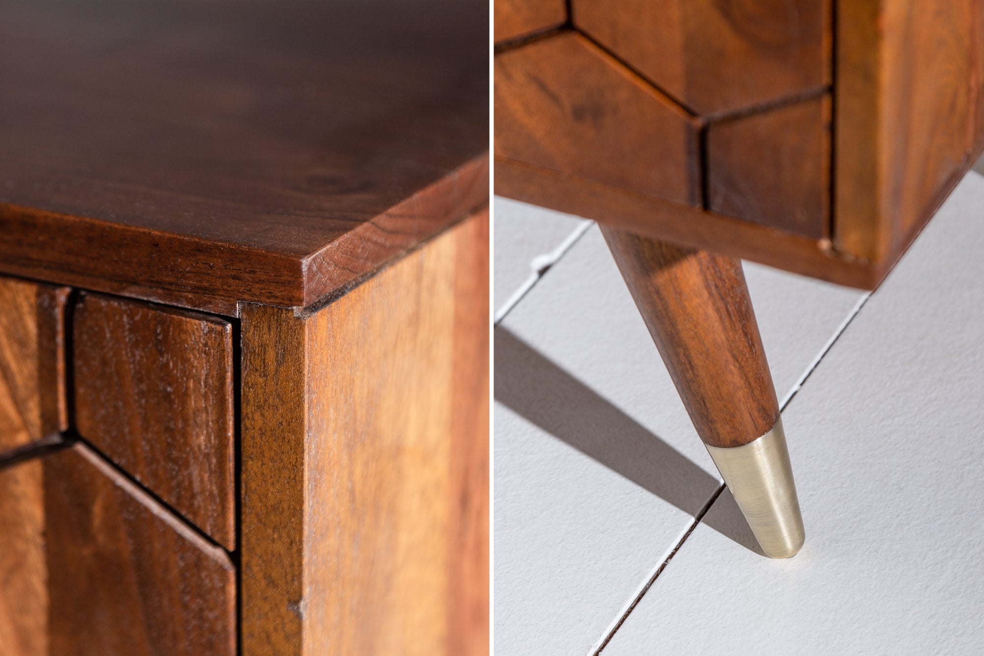 Barek MYSTIC LIVING 75 cm to elegancki, kompaktowy mebel, który łączy naturalne drewno z dekoracyjnymi akcentami w stylu glamour. Wykonany z litego drewna akacjowego, wyróżnia się ciepłym odcieniem oraz wyraźnym usłojeniem, które nadaje mu autentyczny i ponadczasowy charakter.