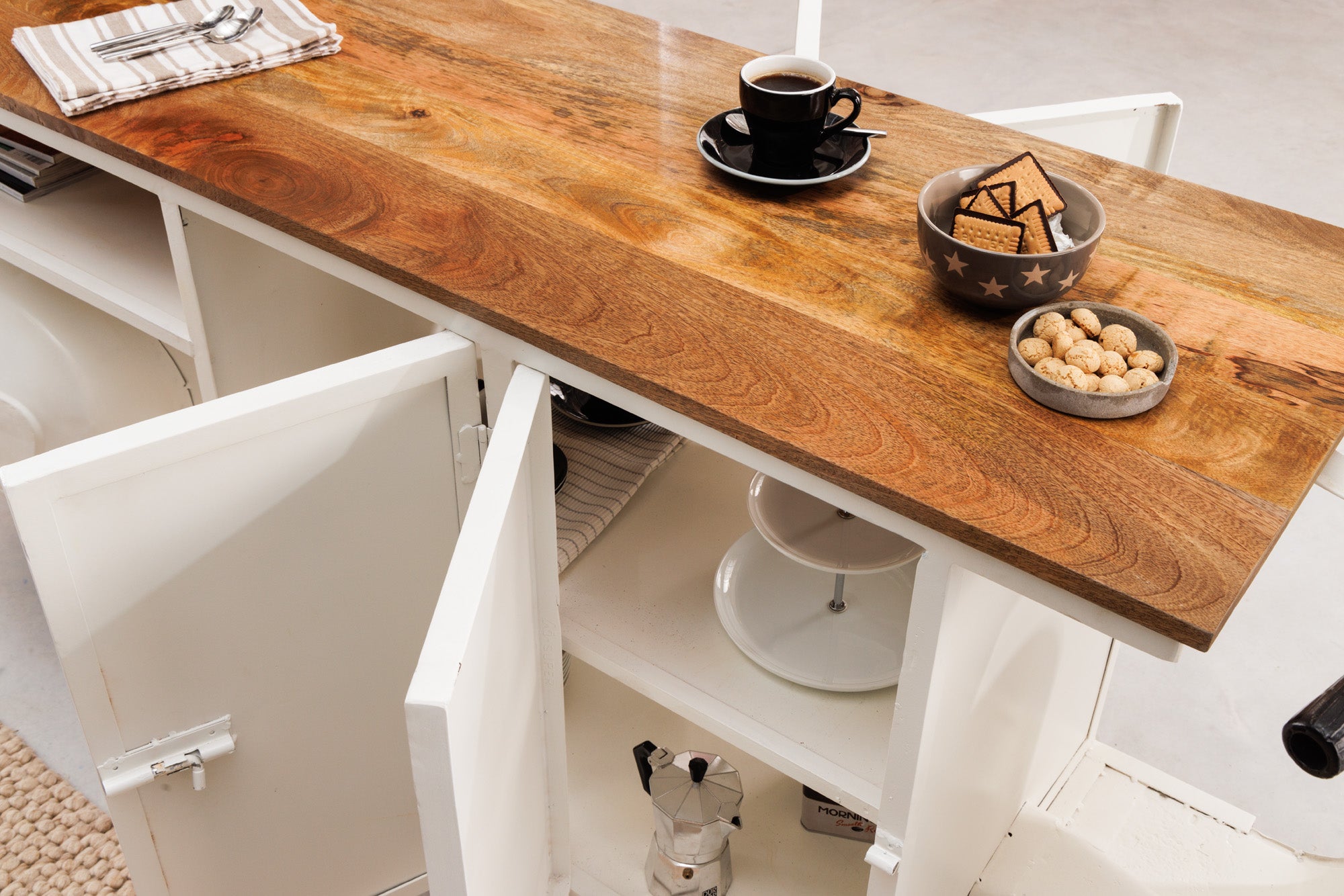 Materiał: lite drewno mango + metal
