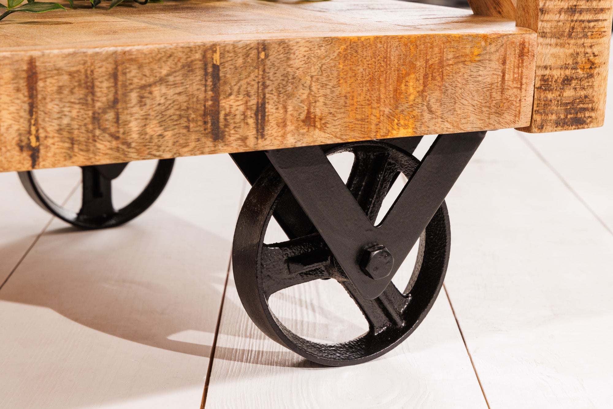 Stylowy barek na wino o industrialnym charakterze, wykonany z litego drewna mango i metalowych elementów. Model BODEGA wyróżnia się mobilną konstrukcją na kółkach, dzięki czemu możesz łatwo przemieszczać go w zależności od potrzeb – idealny zarówno do salonu, jak i do strefy jadalnianej lub kuchni.