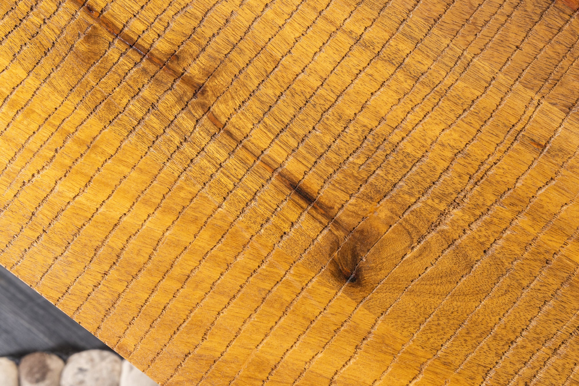 – dekoracyjne, surowe ślady piły na powierzchni