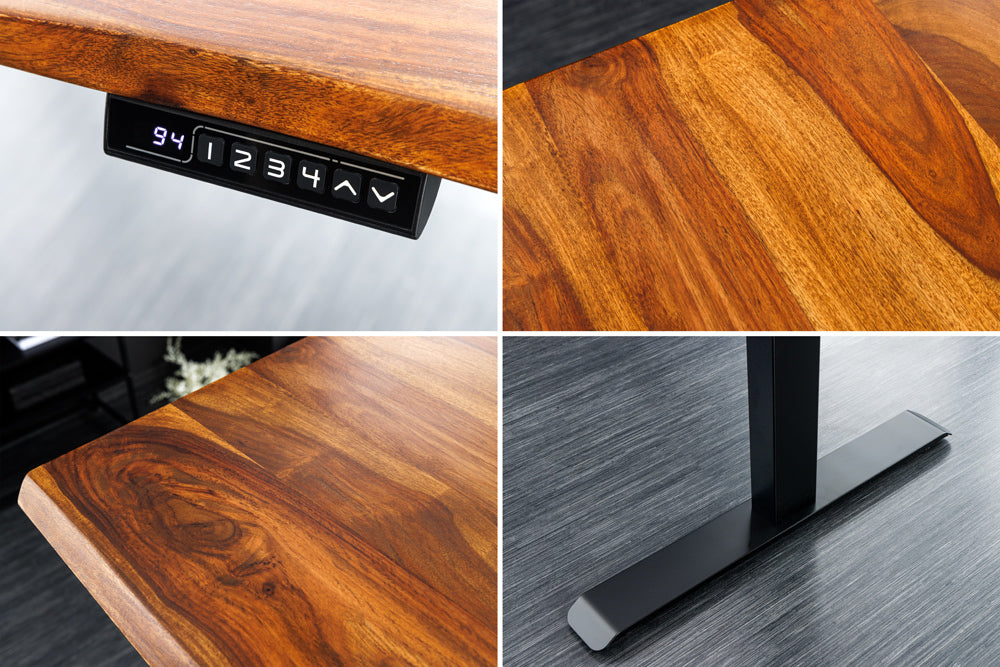Nowoczesne i funkcjonalne biurko marki Invicta Interior, które wyróżnia się minimalistycznym designem opartym na wysokiej jakości, litej powierzchni z drewna sheesham. Brak w komplecie nóg pozwala na dowolne dopasowanie podstawy — można wykorzystać własne nogi, stelaż metalowy lub zastosować gotowe wsporniki, co czyni biurko wyjątkowo elastycznym w aranżacji.