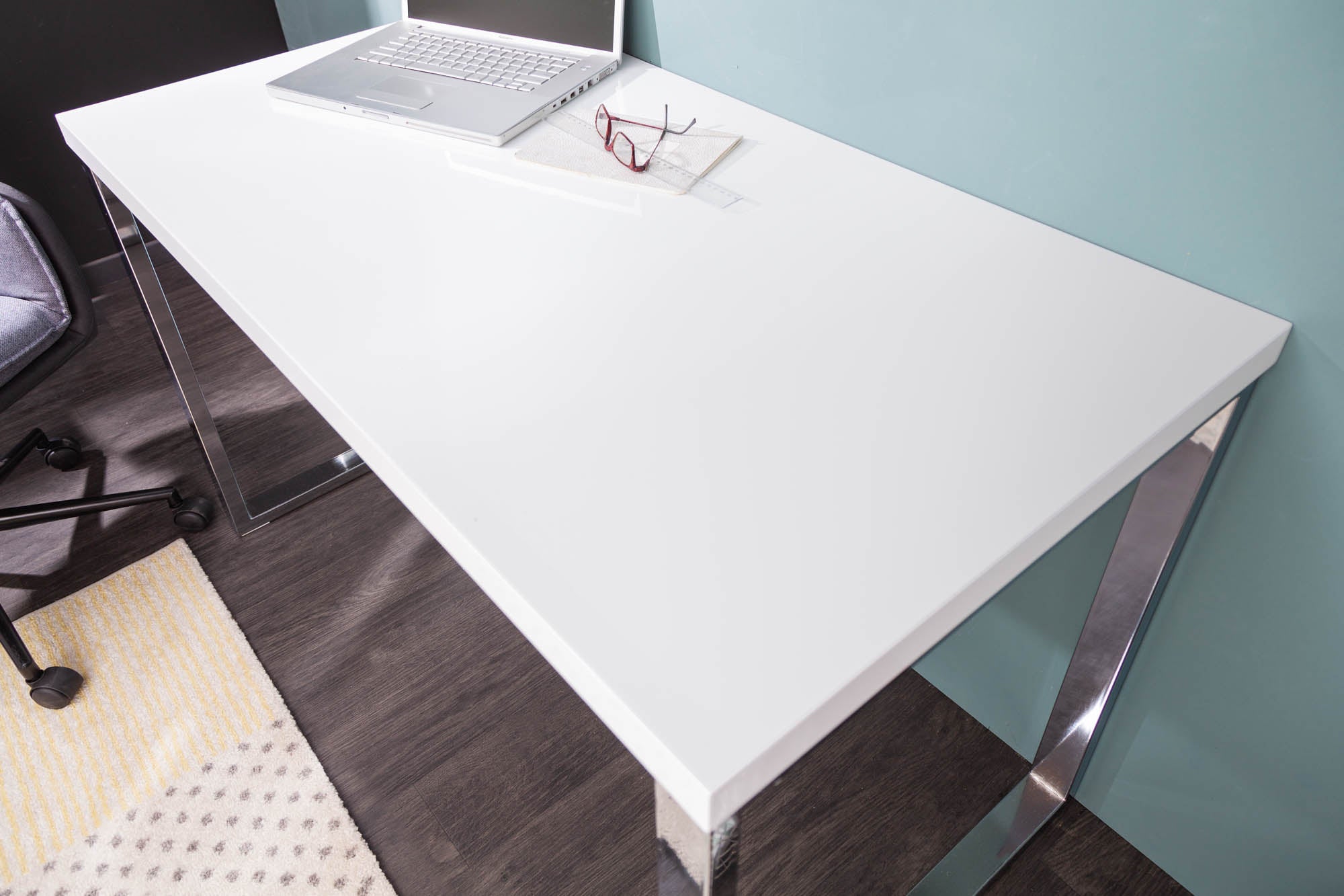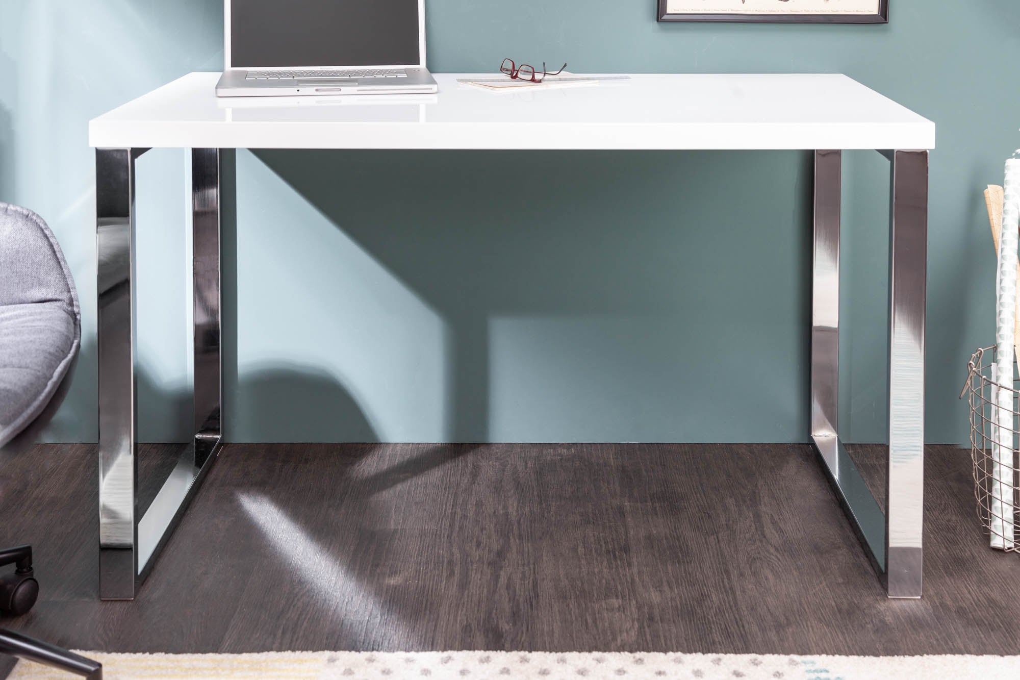 Stabilna konstrukcja z chromowanego metalu podkreśla nowoczesny charakter biurka i zapewnia trwałość w codziennym użytkowaniu. Prosta forma sprawia, że mebel idealnie wpisuje się w aranżacje nowoczesne, glamour oraz minimalistyczne. Dzięki swoim wymiarom świetnie nadaje się szczególnie do pracy z laptopem.