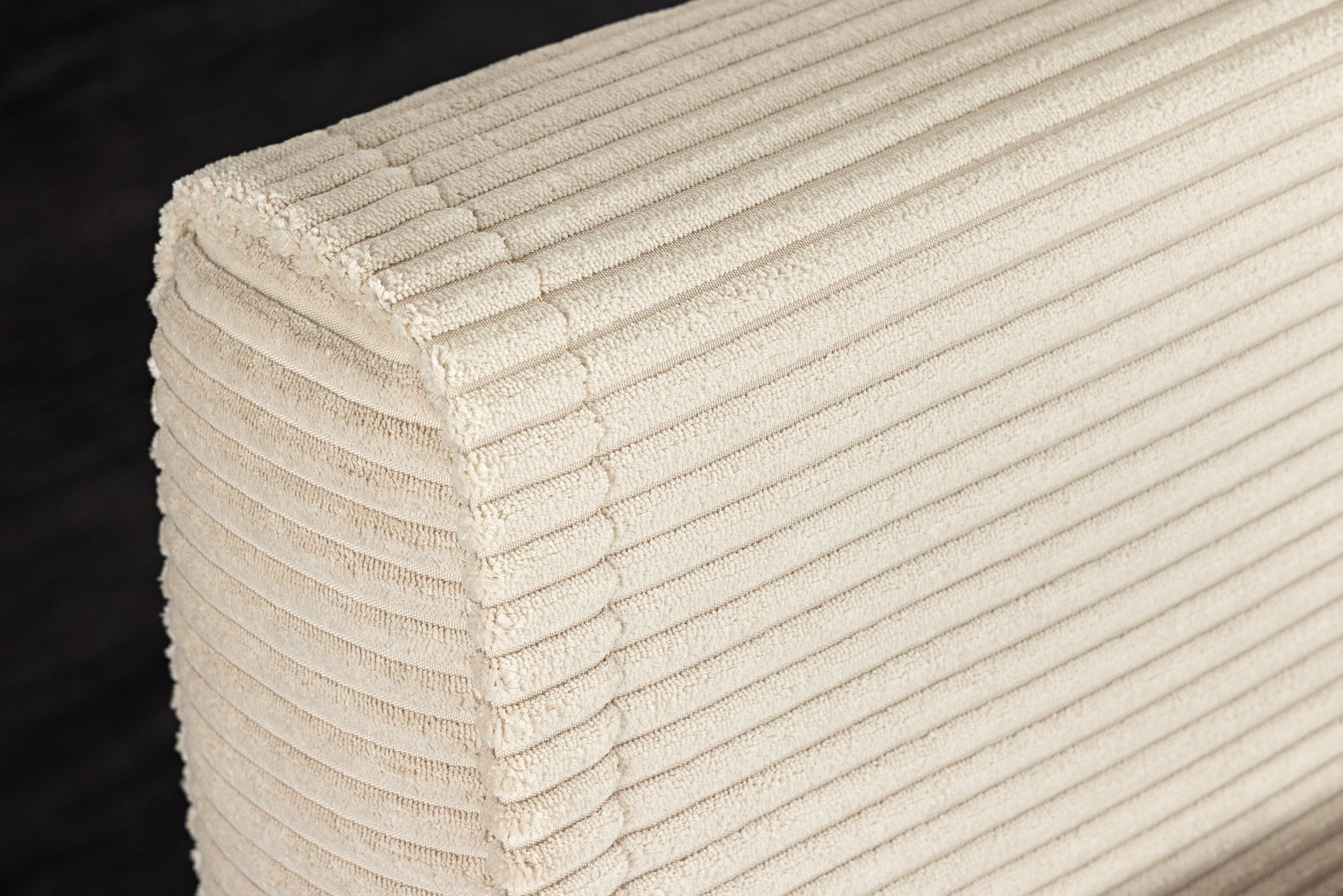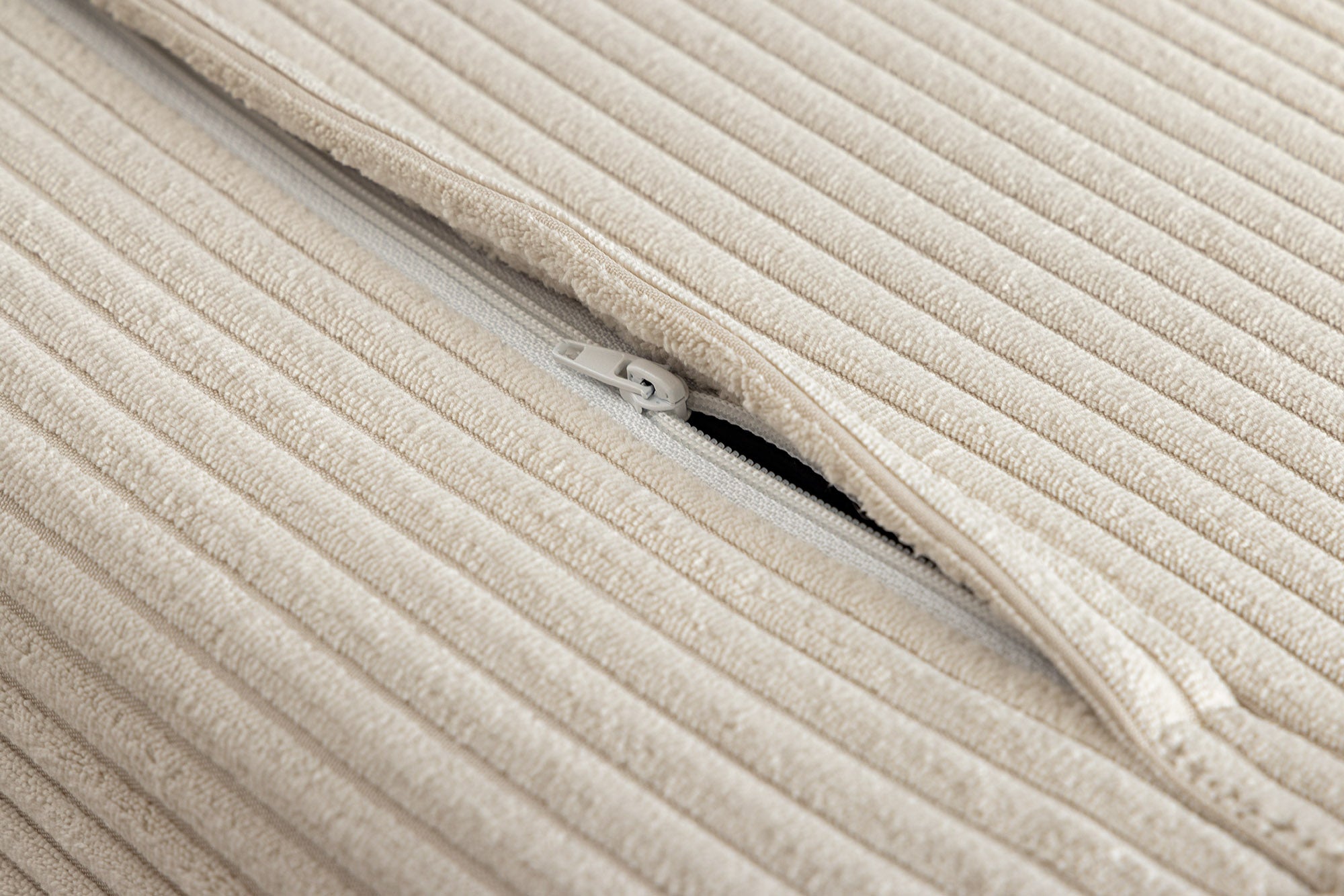 Tapicerka wykonana jest z tkaniny cord (sztruks), która jest miękka, przyjemna w dotyku i dobrze sprawdza się w codziennym użytkowaniu. Jasny, beżowy kolor nadaje wnętrzu lekkości i tworzy przytulny klimat.