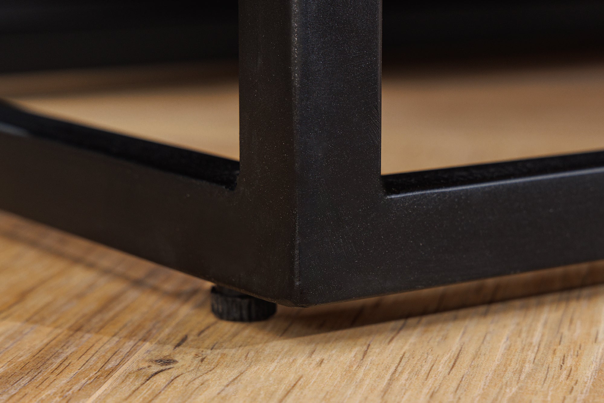 Fronty z drewna teakowego mają nieregularną strukturę i często pochodzą z odzyskanego materiału, co nadaje meblowi autentyczny, lekko „surowy” charakter. Dzięki temu każdy egzemplarz wygląda inaczej i ma swój indywidualny styl.