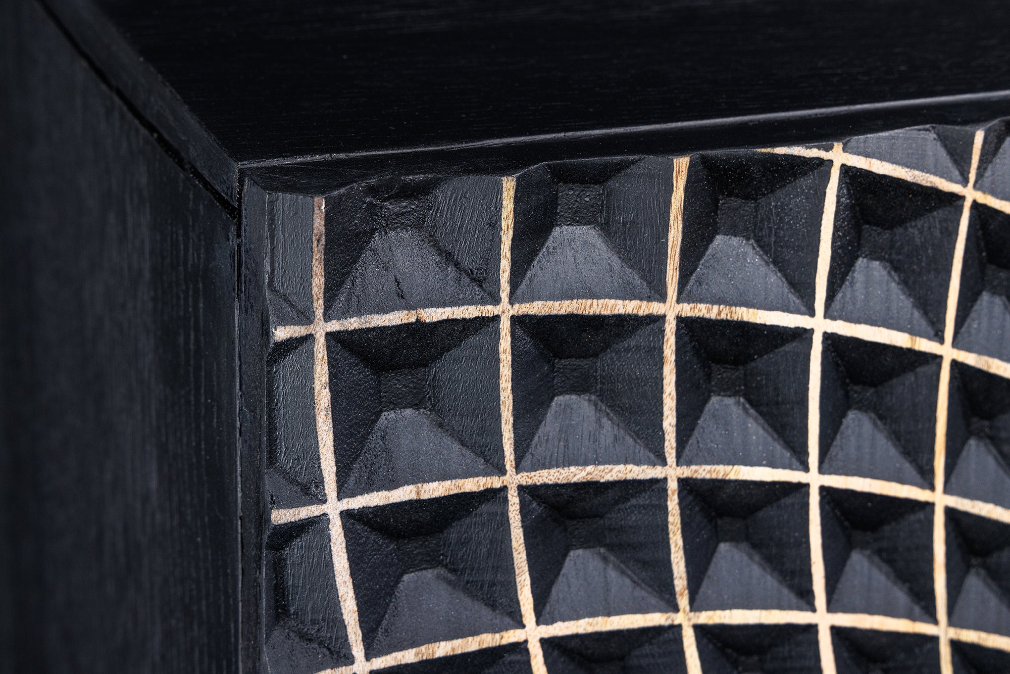 Komoda / highboard ILLUSION 120 cm – lite drewno mango / front 3D / czarna 44321