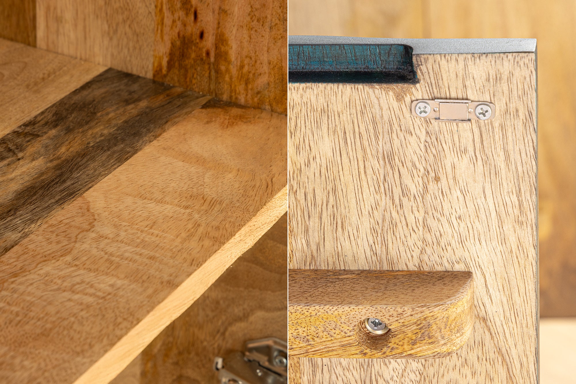 Każdy egzemplarz jest unikatowy – naturalne drewno mango ma indywidualne usłojenie, a ręczne wykończenie sprawia, że nie ma dwóch identycznych sztuk