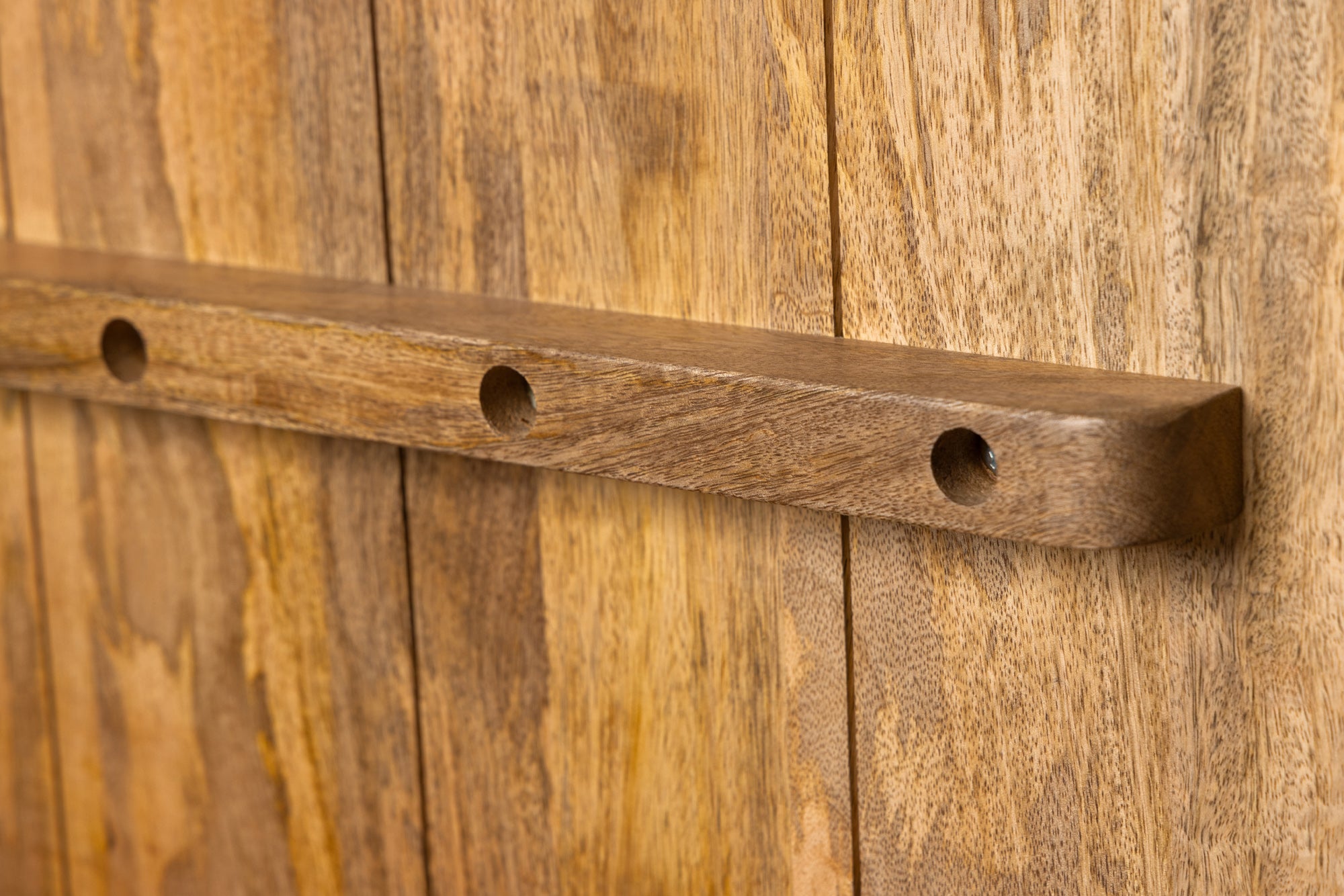 Naturalne drewno mango sprawia, że każdy egzemplarz jest unikatowy – różnice w strukturze i kolorze są naturalne i podkreślają autentyczny charakter mebla.