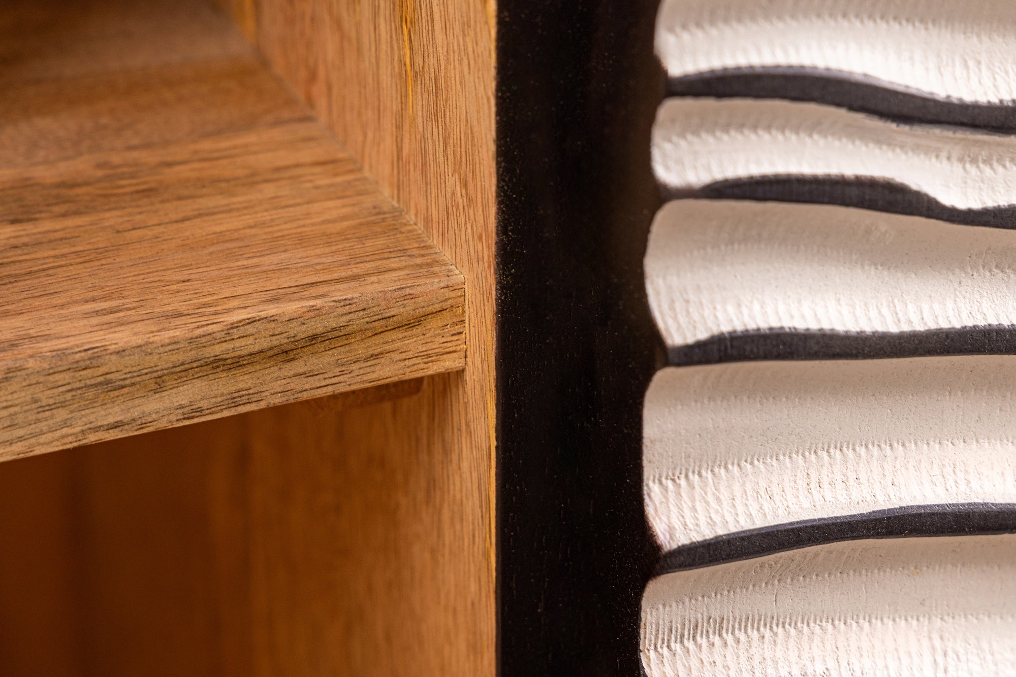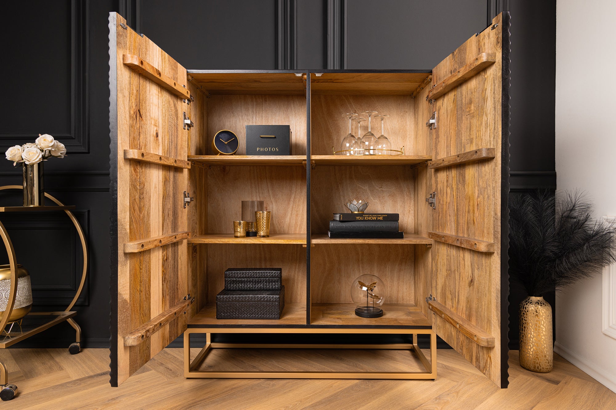 Nowoczesna komoda typu highboard o bardzo charakterystycznym, geometrycznym designie, wykonana z litego drewna mango. Model ZEN CIRCLE wyróżnia się frontami z efektem okręgów 3D, które tworzą spójną, dekoracyjną kompozycję i nadają meblowi wyjątkowy, artystyczny charakter.