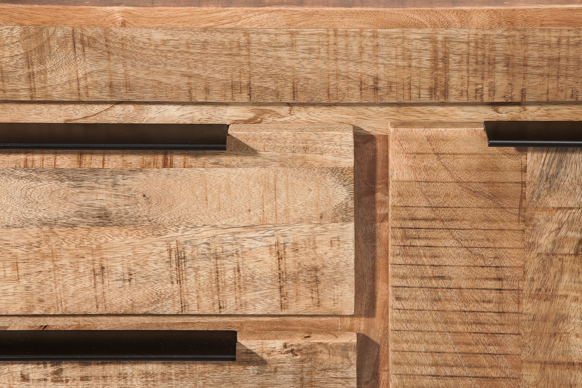 Komoda IRON CRAFT 175 cm to solidny, surowy mebel w stylu industrialnym, który łączy naturalne drewno z prostą, funkcjonalną formą. Wykonana z litego drewna mango, wyróżnia się wyraźnym usłojeniem, przetarciami i naturalnymi niedoskonałościami, które nadają jej autentyczny charakter.