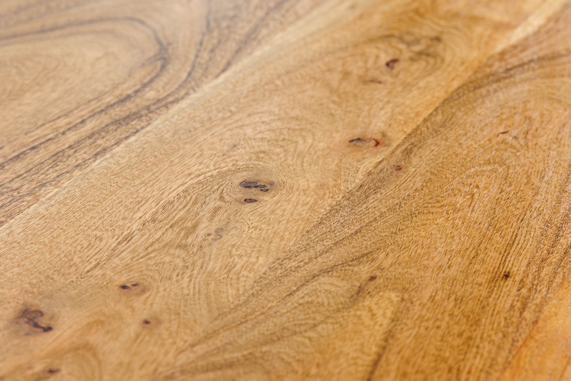 Najbardziej charakterystycznym elementem jest naturalna krawędź typu live edge, czyli zachowany pierwotny kształt drewna. Dzięki temu każdy egzemplarz jest niepowtarzalny i ma indywidualny wygląd. Widoczne sęki, różnice kolorystyczne czy drobne pęknięcia są naturalną cechą materiału i podkreślają jego autentyczność.