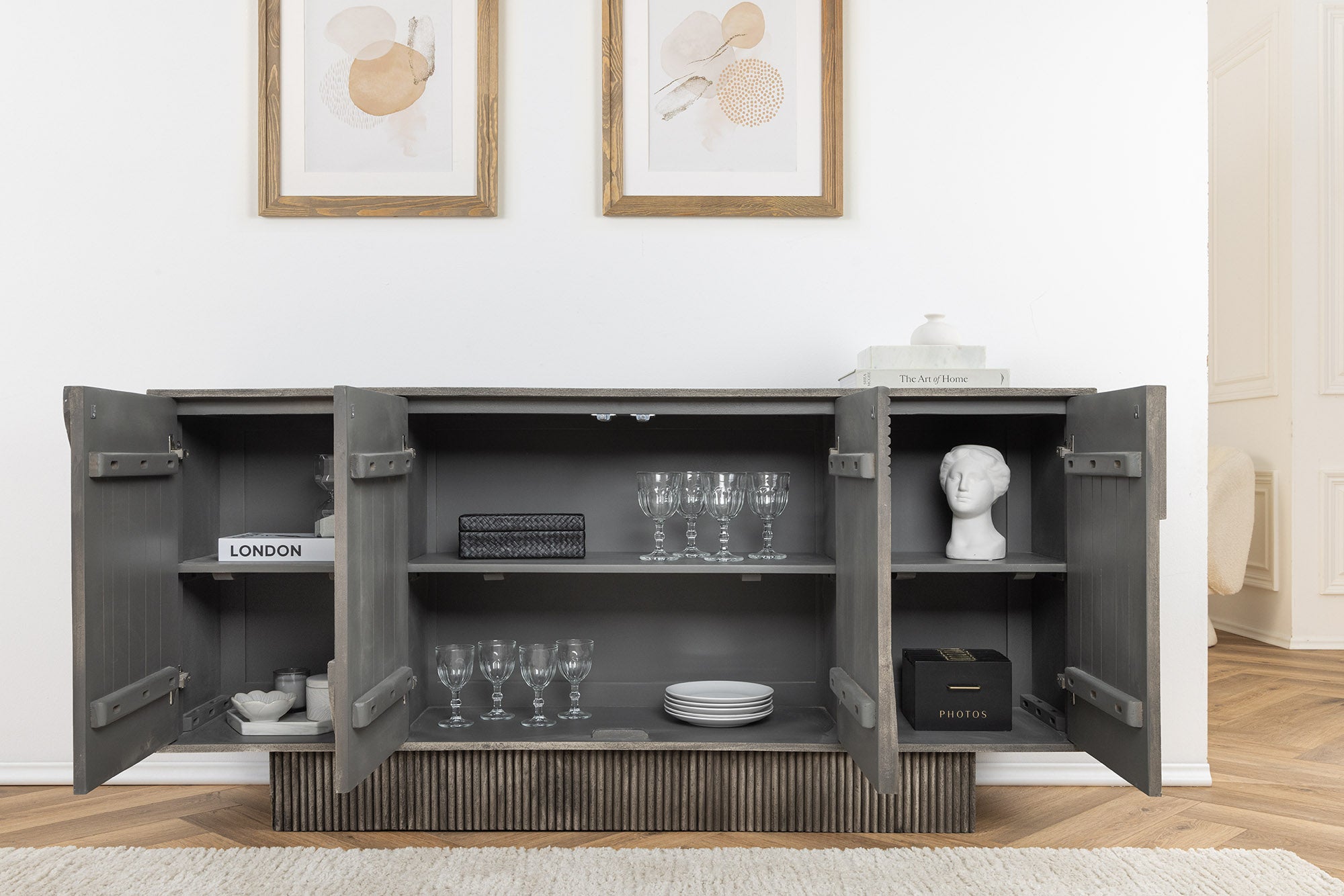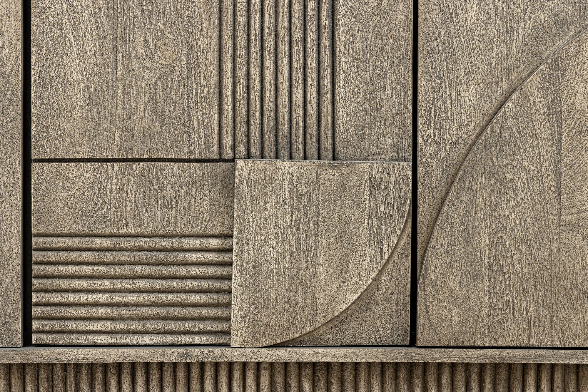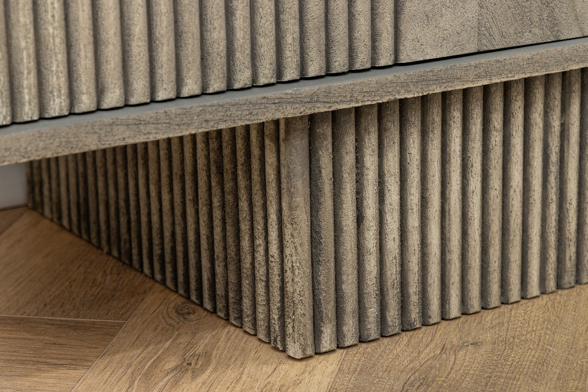 Elegancka komoda o nowoczesnym, a jednocześnie ponadczasowym charakterze, wykonana z litego drewna mango w wykończeniu smoked grey. Przydymiona szarość podkreśla naturalne usłojenie drewna i nadaje meblowi stylowy, lekko industrialny wygląd.