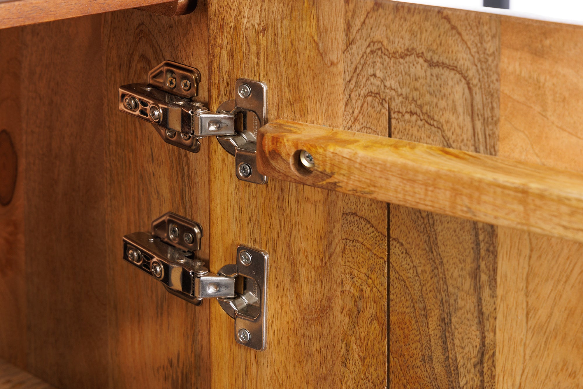 Materiał lite drewno mango lakierowane + MDF + metal
