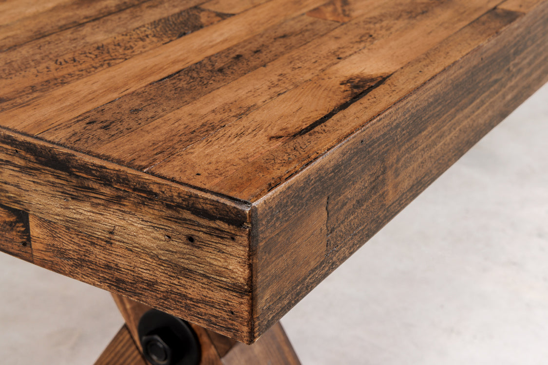 Solidna i funkcjonalna ławka marki Invicta Interior, wykonana z naturalnego drewna sosnowego o wyraźnym usłojeniu, osadzona na stabilnych, czarnych nogach z metalu. Surowe połączenie drewna i metalu nadaje meblowi industrialny, loftowy charakter, który doskonale komponuje się z nowoczesnymi i rustykalnymi aranżacjami wnętrz.