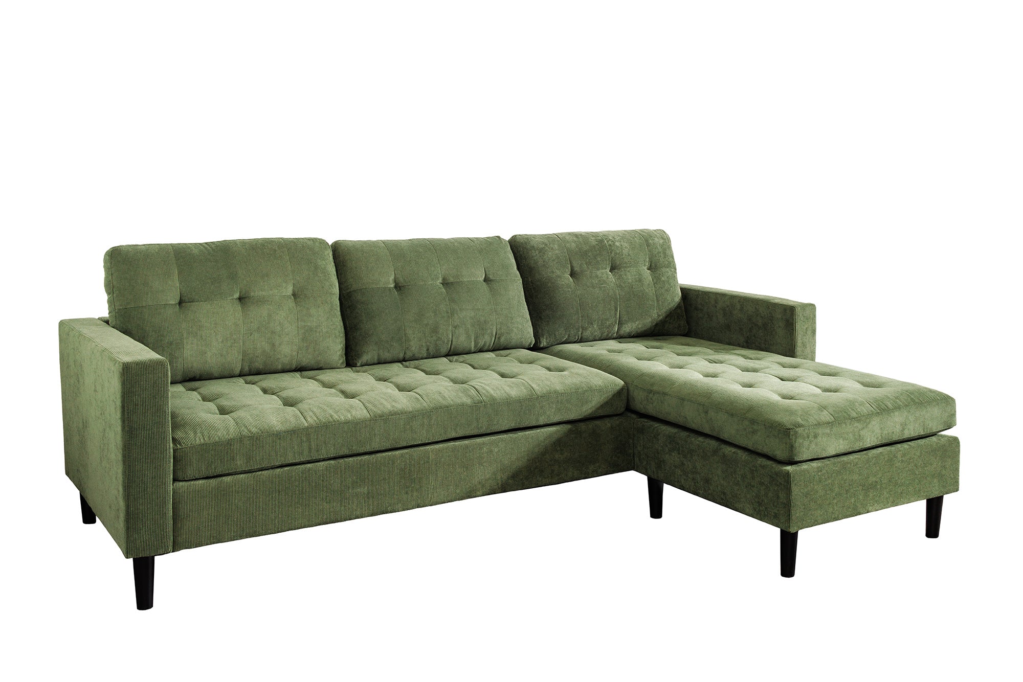 Narożnik STOCKHOLM to wygodny, 3-osobowy model wypoczynkowy o nowoczesnej, przytulnej formie. Tapicerka typu cord / sztruks w kolorze zielonym nadaje mu wyrazisty, modny charakter i świetnie sprawdzi się jako dekoracyjny akcent w salonie, pokoju dziennym lub apartamencie.