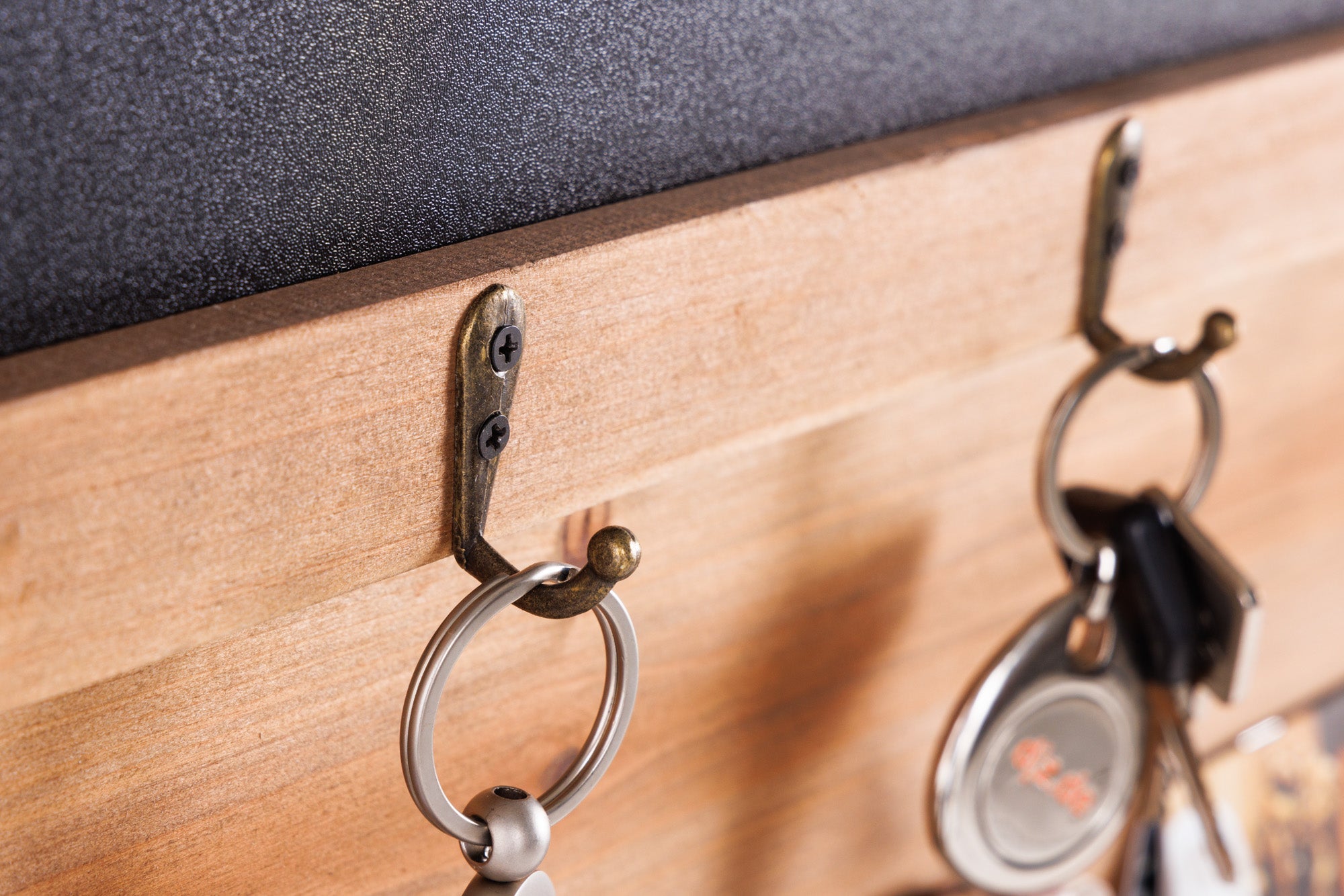 Najbardziej charakterystycznym elementem mebla jest połączenie naturalnej drewnianej półki z czarną, metalową konstrukcją, która nadaje całości industrialnego stylu. Prosta, funkcjonalna forma sprawia, że półka świetnie sprawdza się zarówno jako miejsce do przechowywania, jak i dekoracyjny element ściany. Styl inspirowany jest wnętrzami typu loft oraz vintage, gdzie liczy się surowość i naturalność materiałów