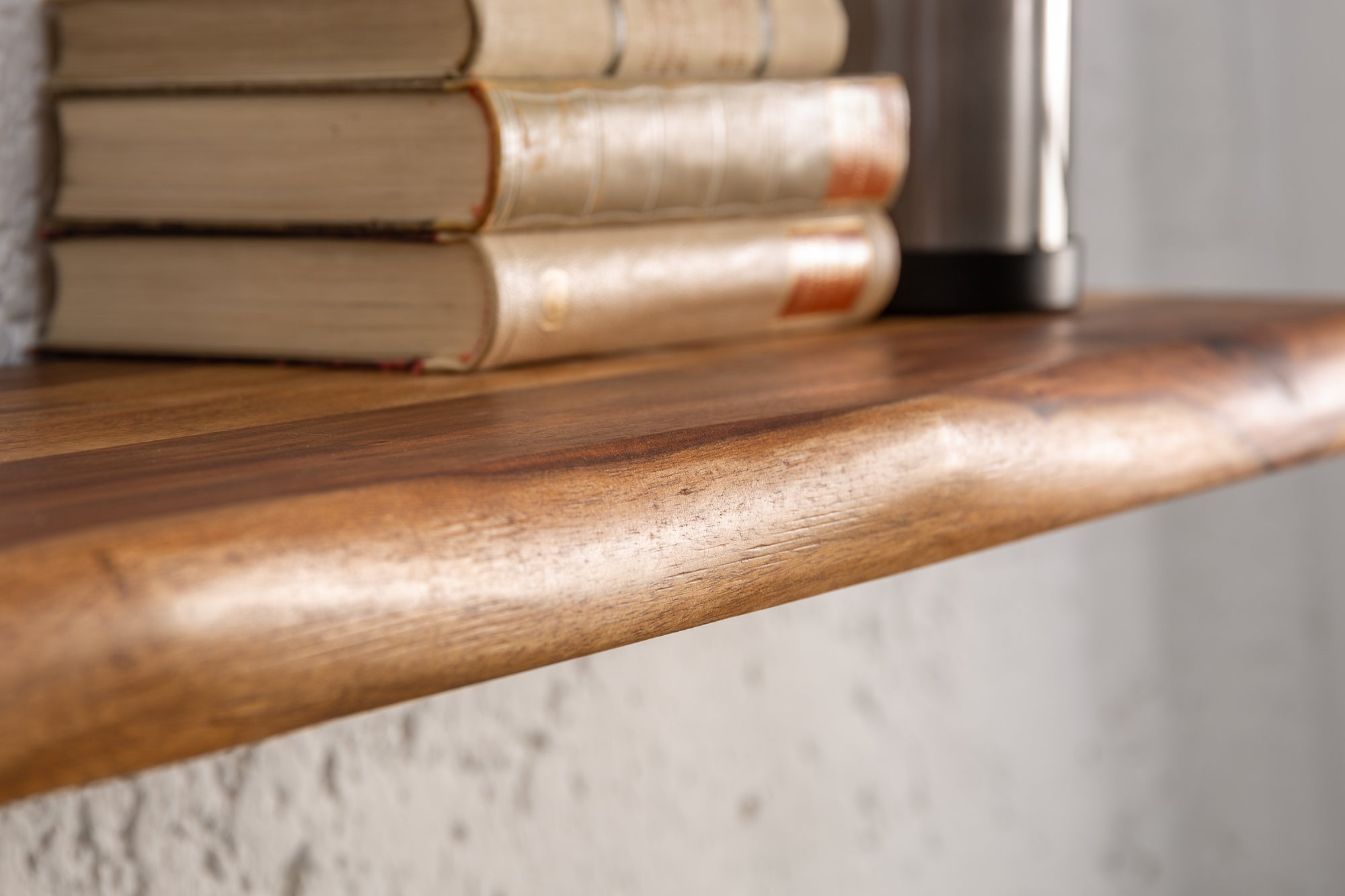 Wyjątkowa półka ścienna o minimalistycznej, a zarazem naturalnej formie, która podkreśla piękno litego drewna. Wykonana z egzotycznego drewna sheesham, zachwyca intensywnym usłojeniem oraz ciepłą kolorystyką, wprowadzając do wnętrza elegancję i autentyczny charakter.