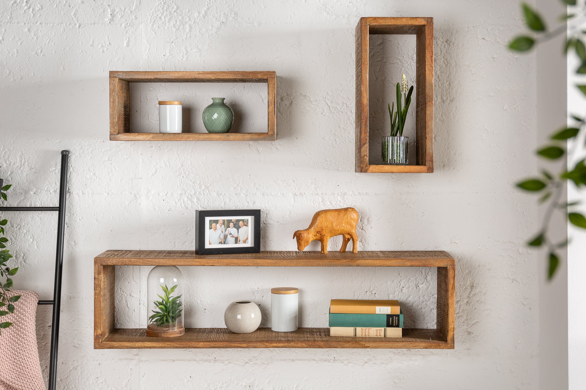 Nowoczesny zestaw półek ściennych o minimalistycznej, a zarazem naturalnej formie, który łączy funkcjonalność z elegancją litego drewna. Wykonane z drewna mango, zachwycają wyraźnym usłojeniem oraz ciepłą kolorystyką, wprowadzając do wnętrza przytulny, naturalny klimat.