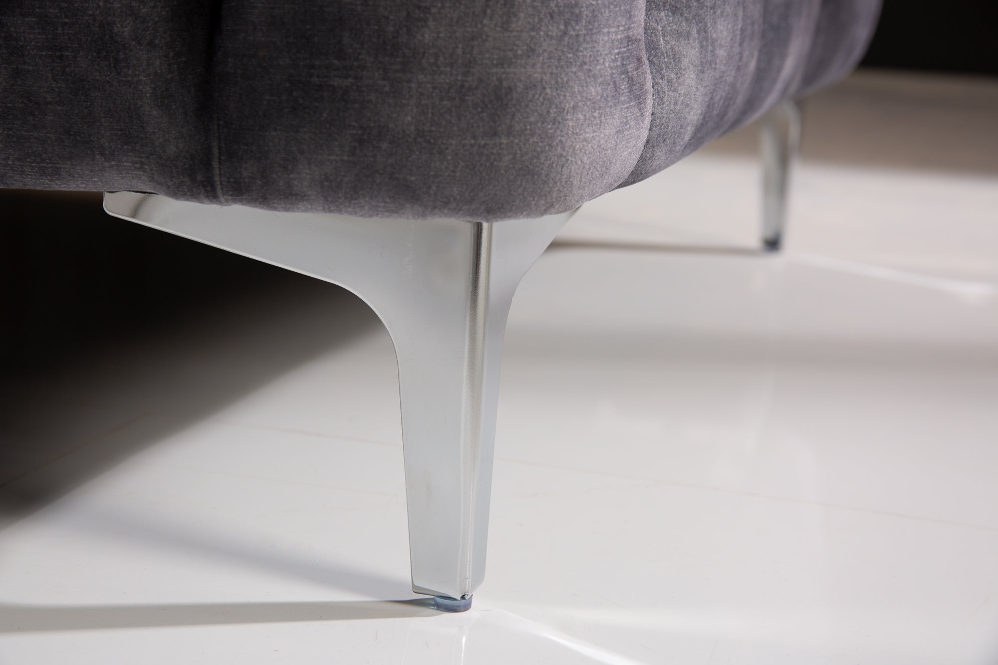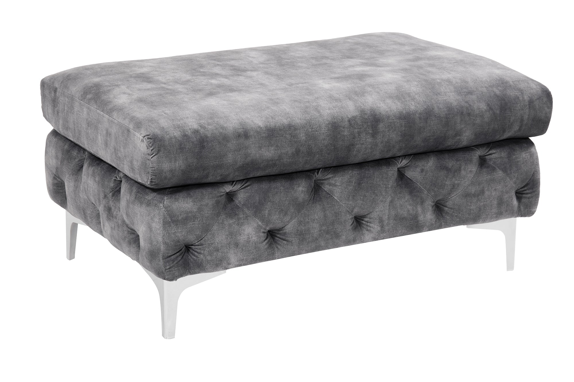 Pufa MODERN BAROCK to doskonały wybór dla osób, które szukają eleganckiego i funkcjonalnego dodatku do wnętrza. Ciemnoszary welur, pikowane siedzisko i srebrne nogi tworzą stylową całość, która doda pomieszczeniu klasy oraz przytulnego charakteru.