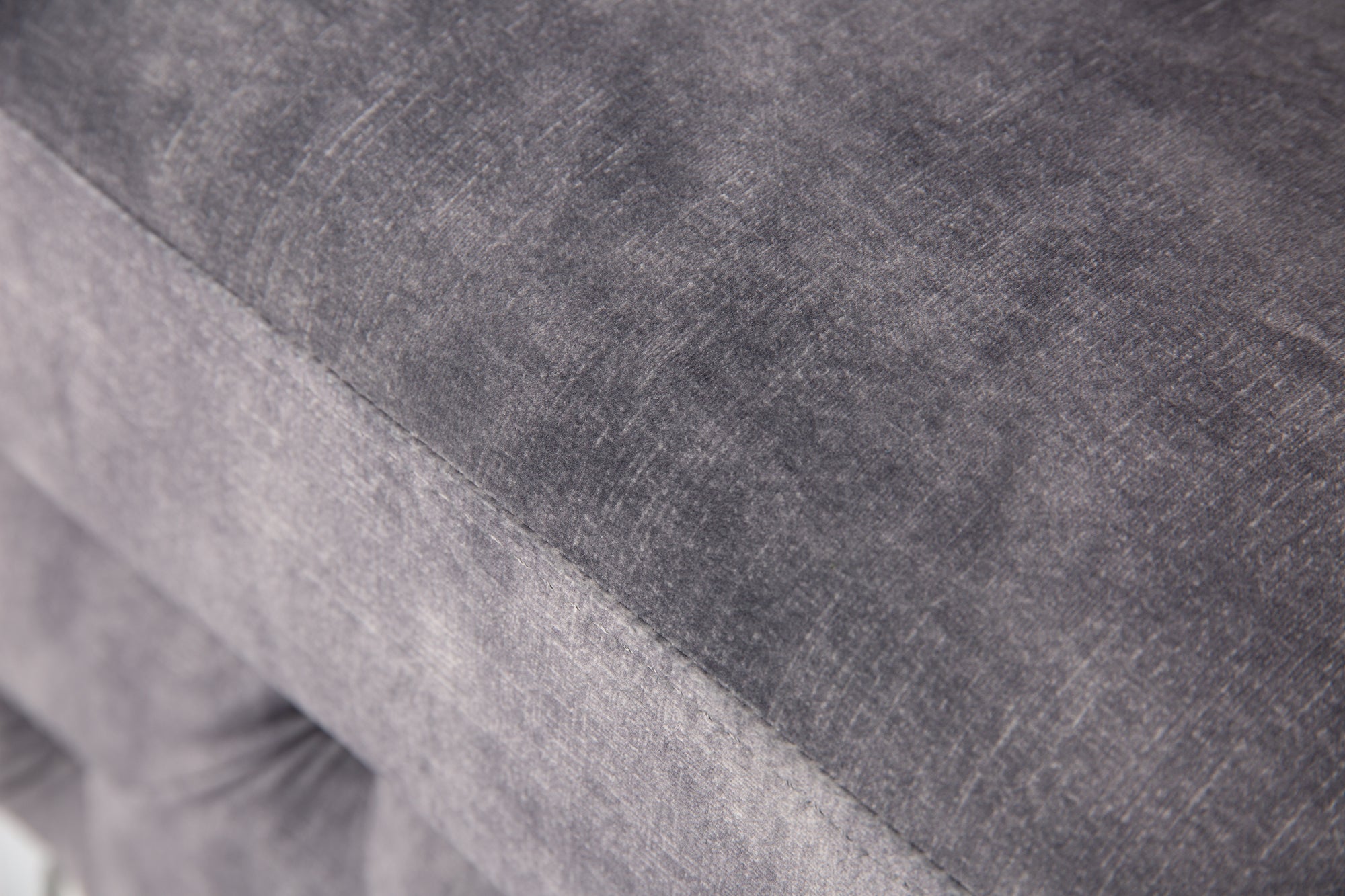 Pufa MODERN BAROCK to elegancki mebel tapicerowany, który łączy klasyczny wygląd w stylu Chesterfield z nowoczesną, dekoracyjną formą. Ciemnoszara welurowa tapicerka nadaje całości szlachetnego charakteru, a srebrne metalowe nogi podkreślają elegancki, lekko glamour wygląd.