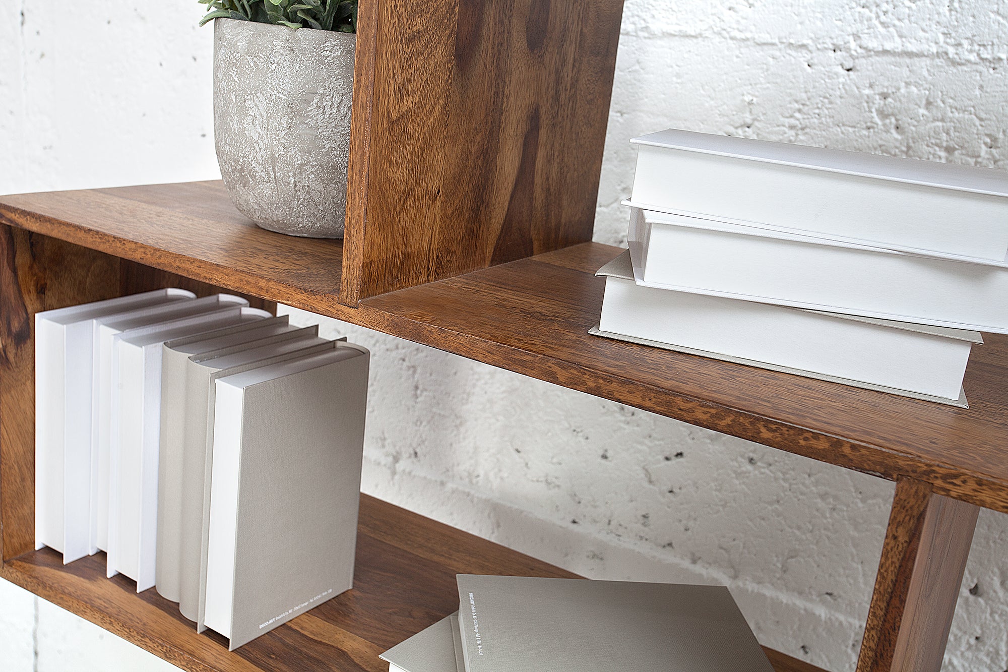 asymetryczny, nowoczesny układ półek