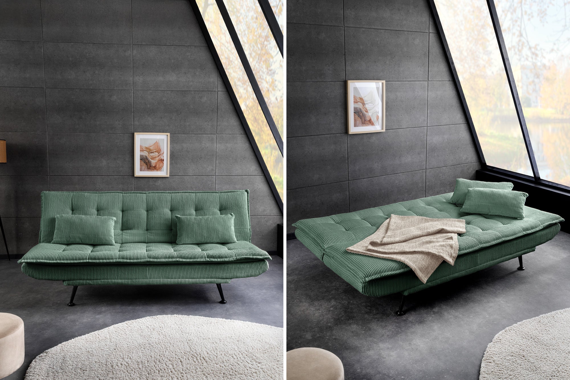 Sofa rozkładana JAZZ 195 cm – 3-osobowa / cord zielony / funkcja spania / 47523