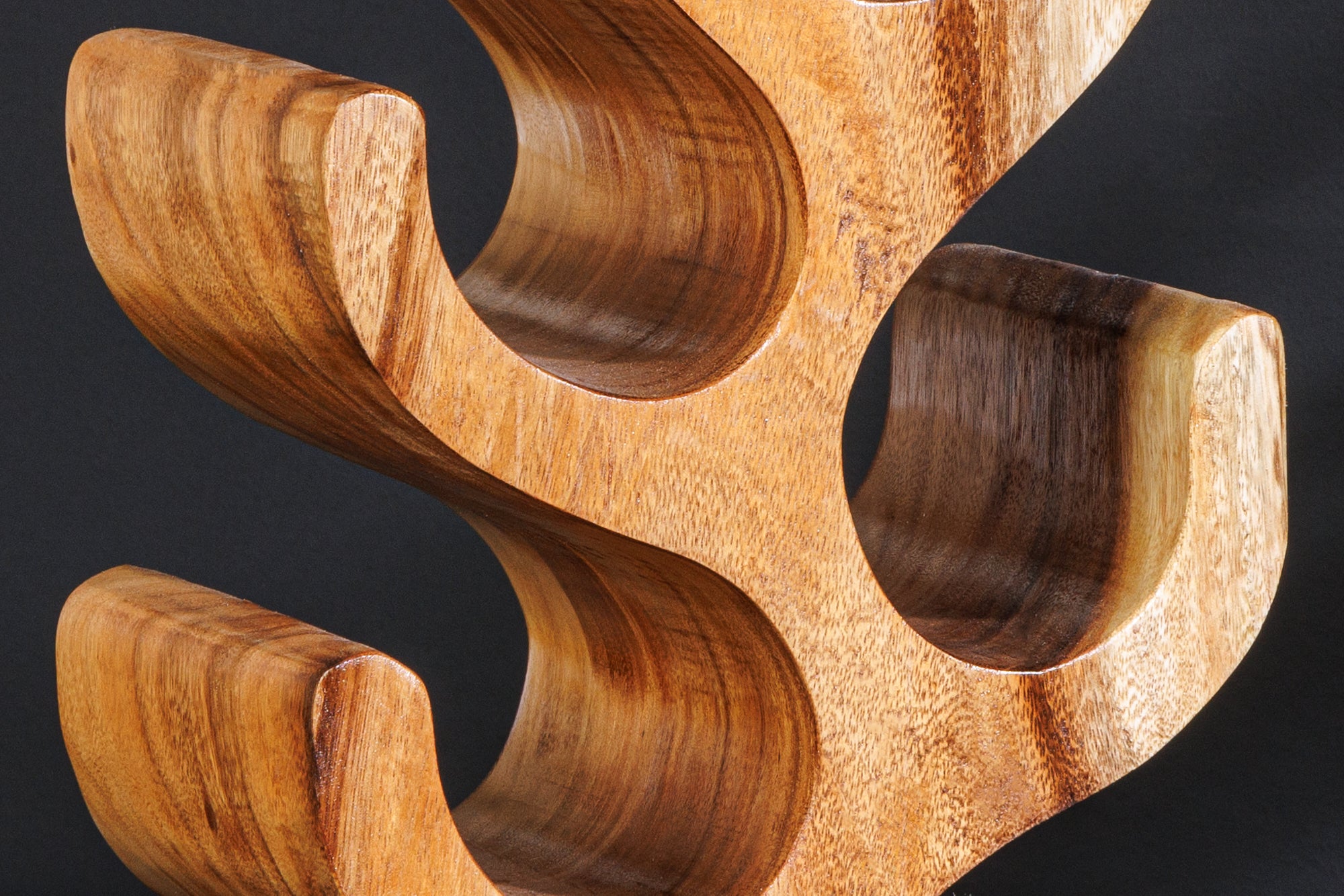 Wyjątkowy stojak na wino o naturalnym i rzeźbiarskim charakterze, wykonany z jednego kawałka litego drewna suar. Model ARTE wyróżnia się organicznym kształtem i nieregularną linią, dzięki czemu przypomina bardziej dekoracyjną rzeźbę niż klasyczny stojak.