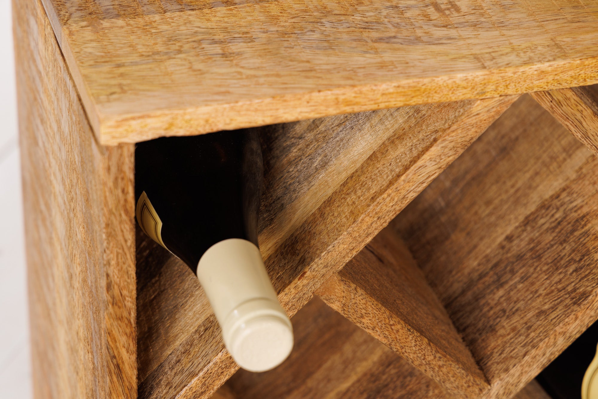 Wyjątkowy stojak na wino o naturalnym i artystycznym charakterze, wykonany z jednego kawałka litego drewna suar. Model ARTE wyróżnia się organiczną, rzeźbiarską formą oraz nieregularną linią, dzięki czemu każdy egzemplarz wygląda jak unikatowa dekoracja, a nie tylko funkcjonalny mebel.