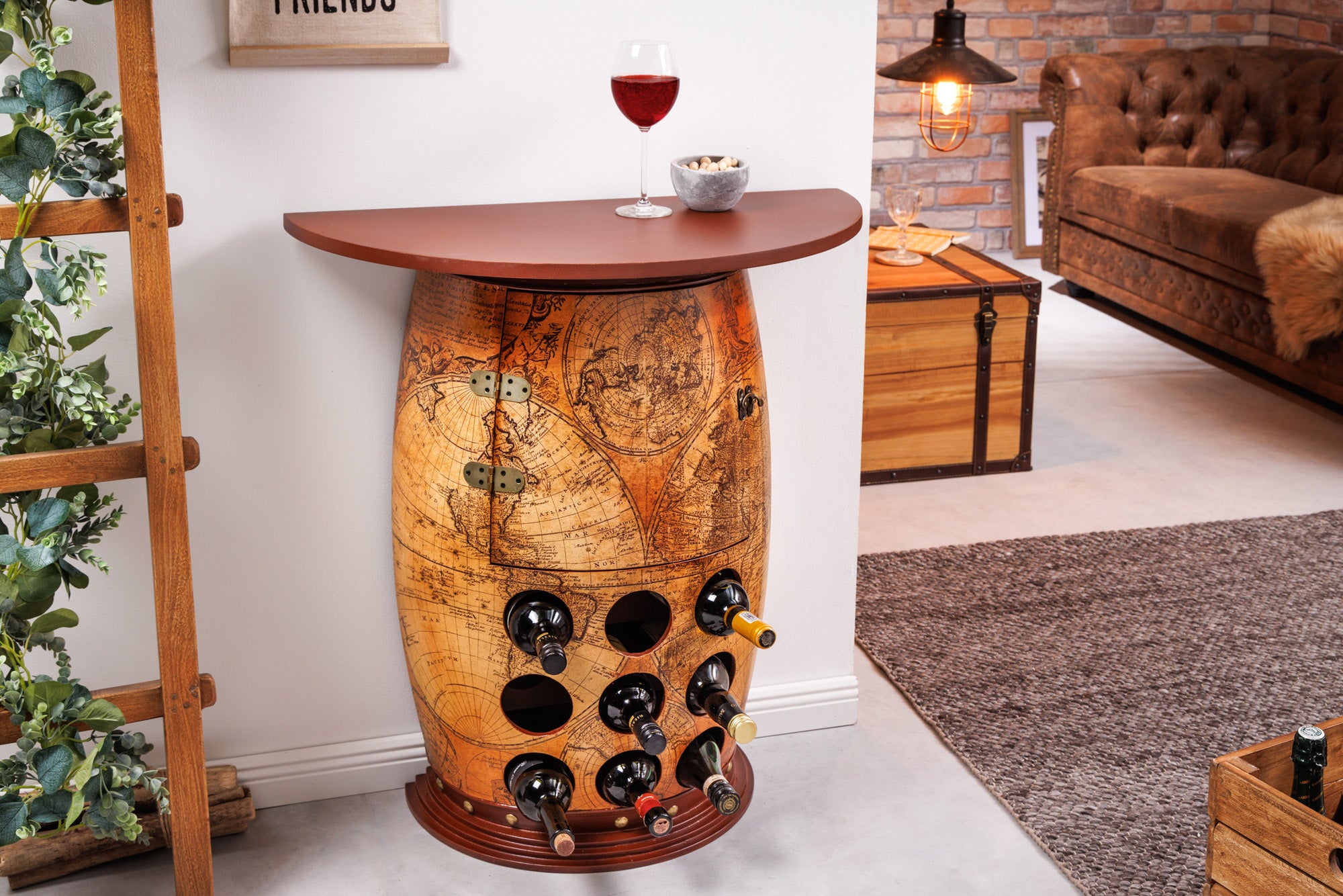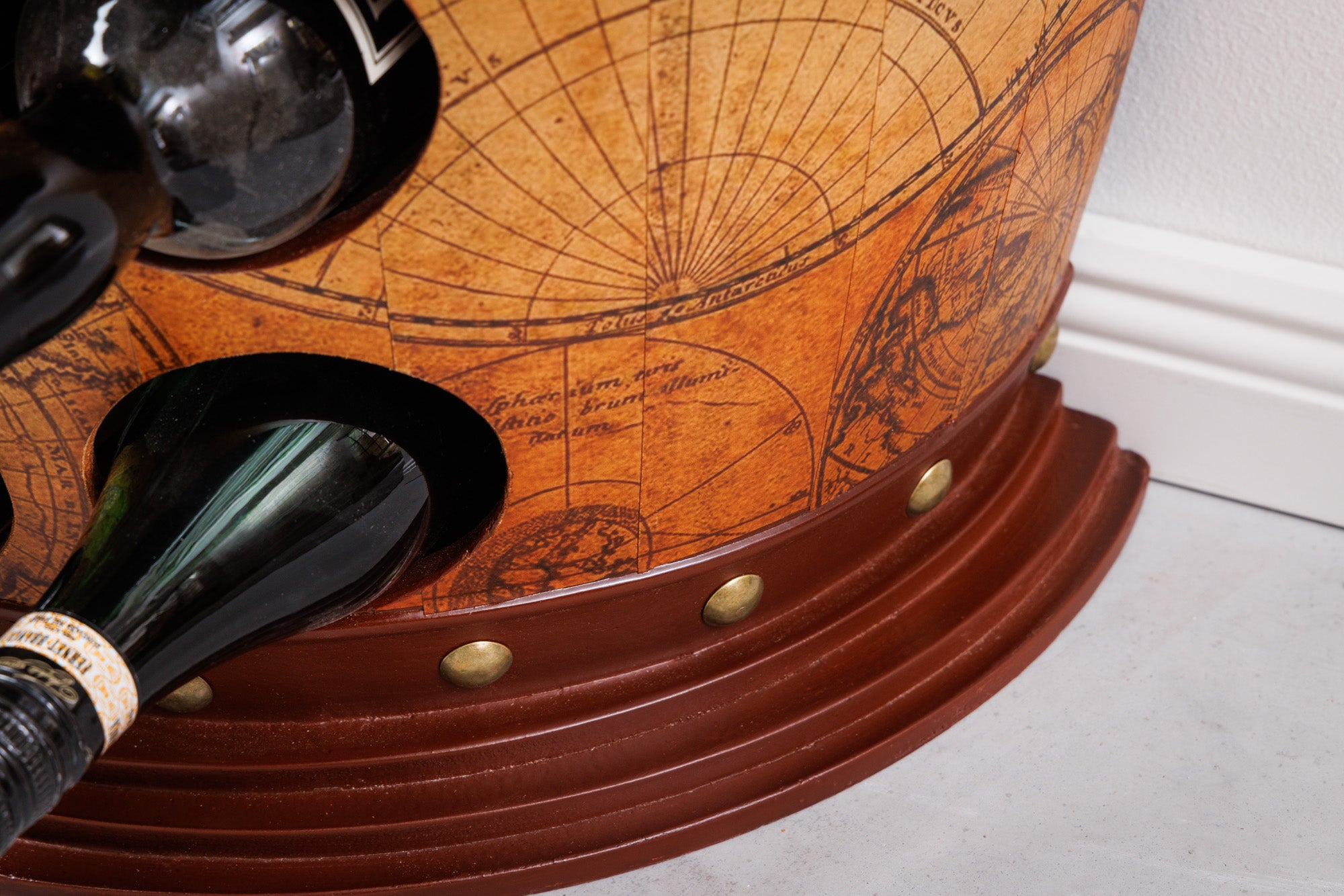 Stylowy stojak na wino o wyjątkowym, marynistycznym charakterze, inspirowany formą klasycznej beczki. Model HALF SEVEN SEAS został wykonany z litego drewna sosny i wyróżnia się dekoracyjnym wykończeniem oraz klimatem vintage, który nadaje wnętrzu niepowtarzalny styl.