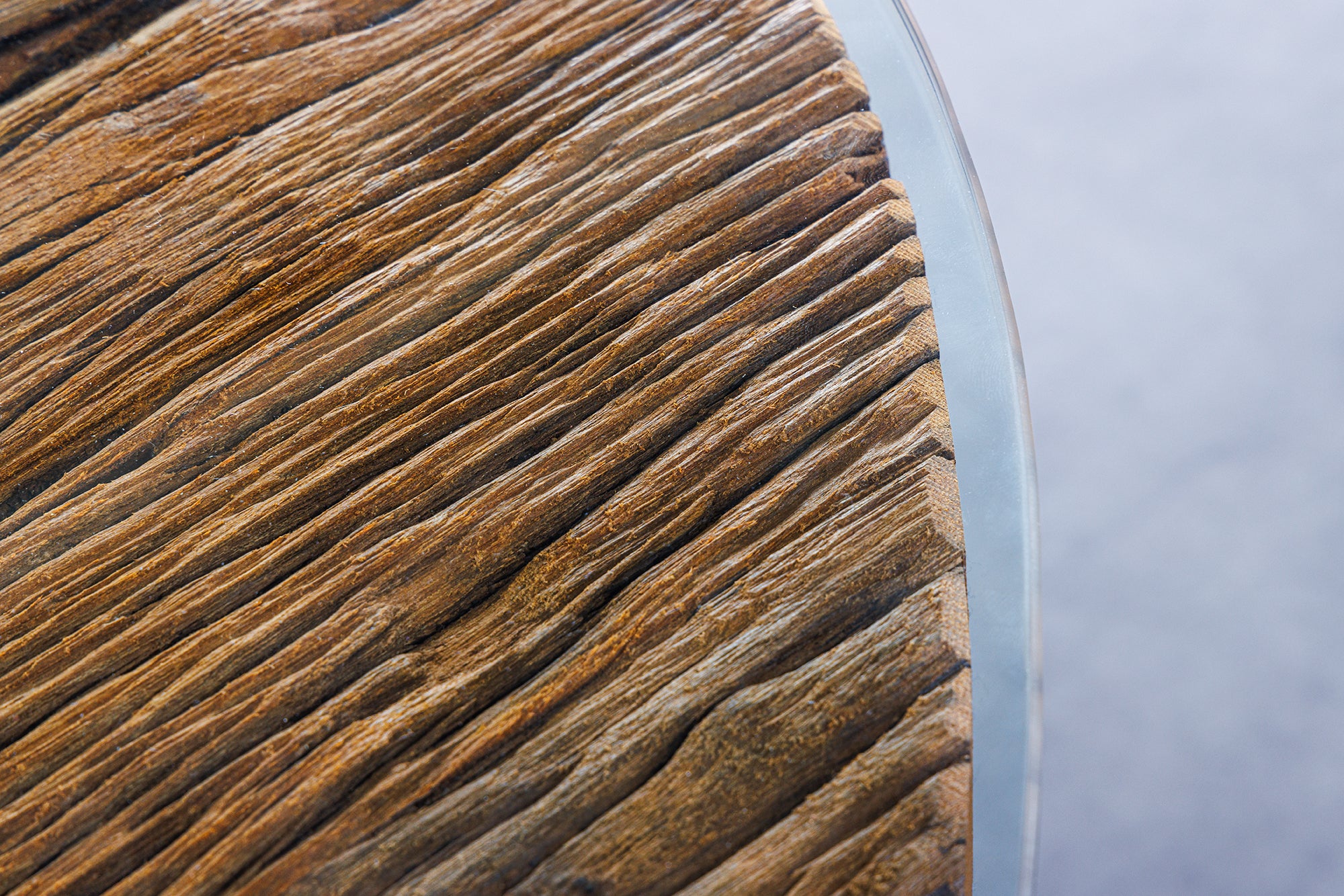szklana tafla podkreślająca rysunek drewna