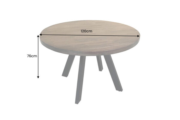 Solidny stół do jadalni w stylu industrialnym, który łączy naturalne lite drewno z nowoczesną metalową konstrukcją. Blat wykonany jest z wysokiej jakości drewna mango w naturalnym wykończeniu, dzięki czemu widoczne usłojenie i struktura drewna nadają meblowi autentyczny, wyjątkowy charakter. Każdy egzemplarz posiada indywidualny rysunek słojów, co sprawia, że stół jest niepowtarzalny.