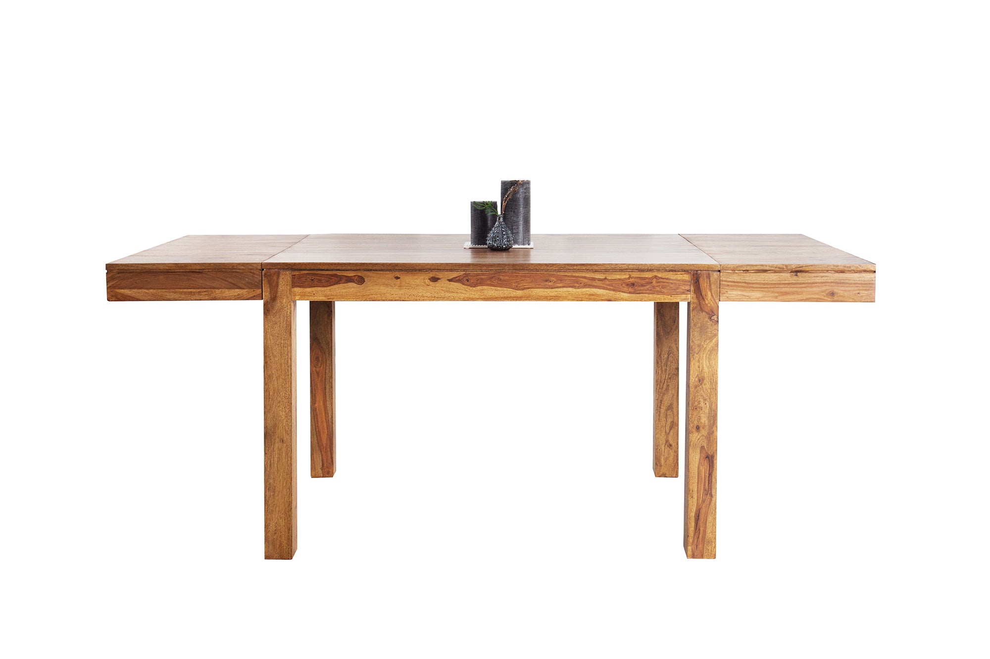 Funkcjonalny i elegancki stół do jadalni wykonany z litego drewna sheesham (palisander indyjski), które wyróżnia się wyjątkowym usłojeniem oraz naturalną, ciepłą kolorystyką. Każdy egzemplarz posiada unikalny rysunek drewna, co nadaje meblowi niepowtarzalny charakter i sprawia, że staje się ozdobą wnętrza.