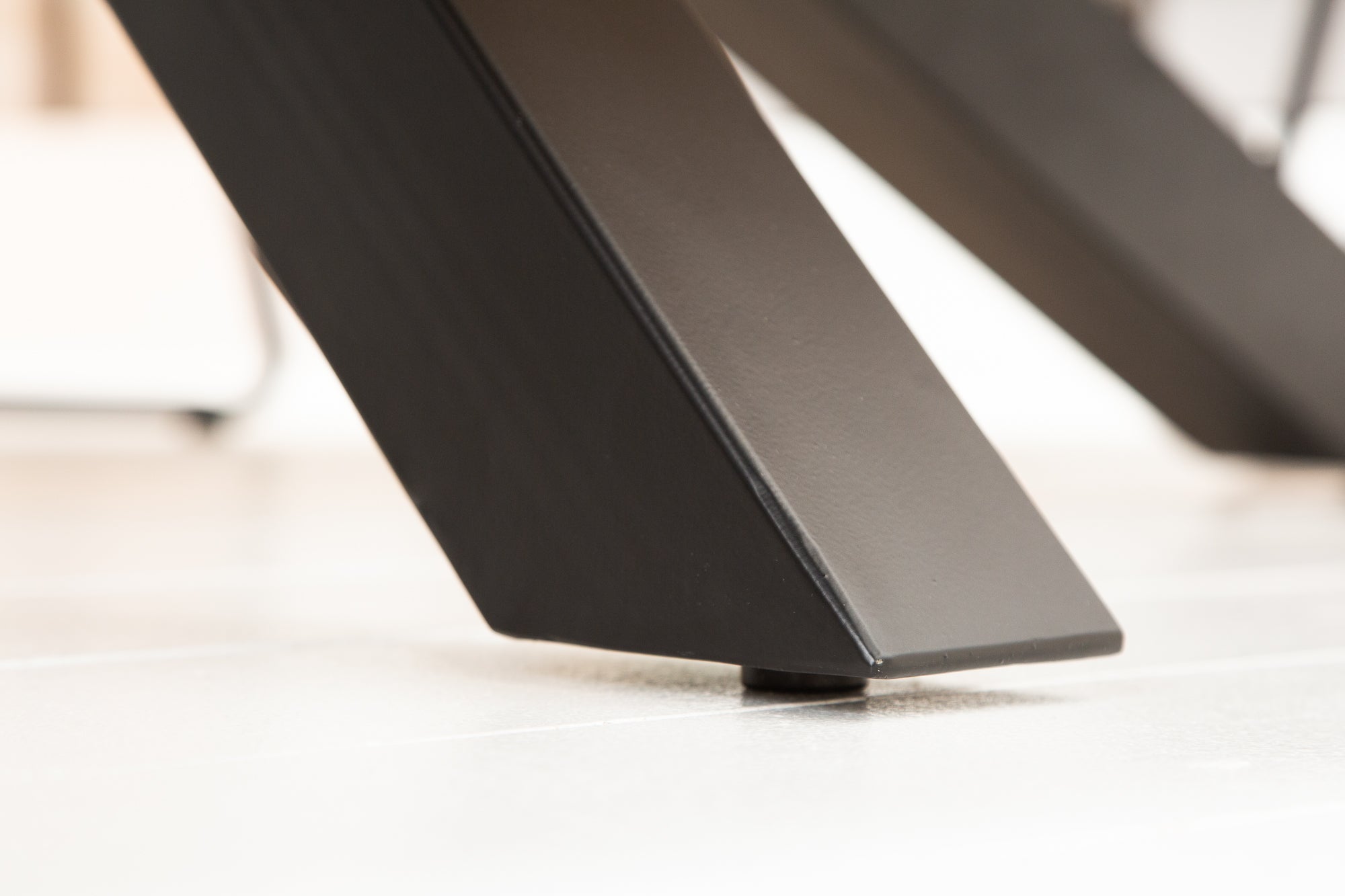 Podstawę stołu stanowi stabilna metalowa rama w czarnym kolorze o charakterystycznym, nowoczesnym układzie nóg, która podkreśla loftowy styl mebla. Dzięki długości 200 cm stół oferuje dużą powierzchnię użytkową i doskonale sprawdzi się podczas rodzinnych spotkań oraz większych kolacji.