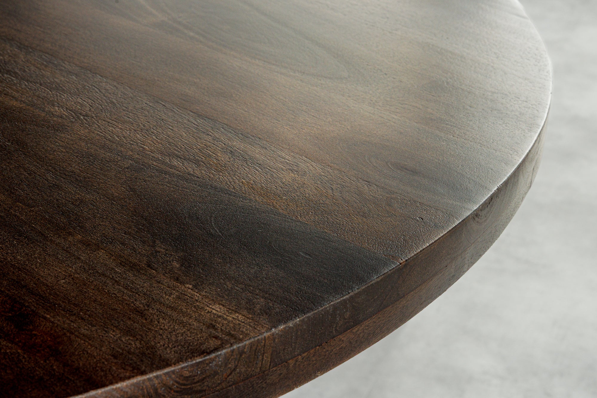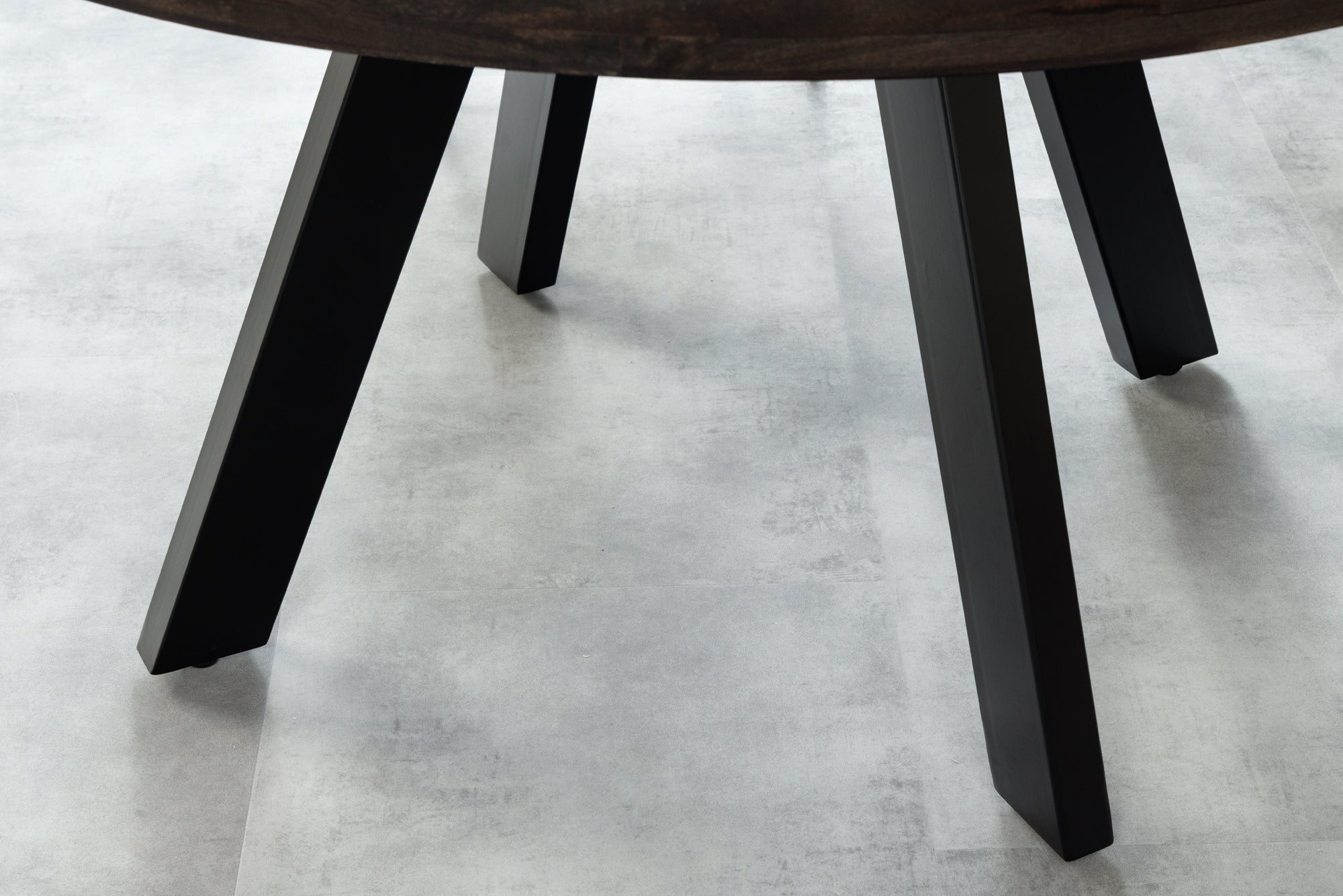 Nowoczesny stół jadalniany marki Invicta Interior, który łączy naturalną estetykę drewna mango z industrialnym charakterem czarnych metalowych nóg. Okrągły kształt blatu sprzyja przyjaznej aranżacji stołu zarówno w jadalni, jak i kuchni czy przestrzeniach śniadaniowych.