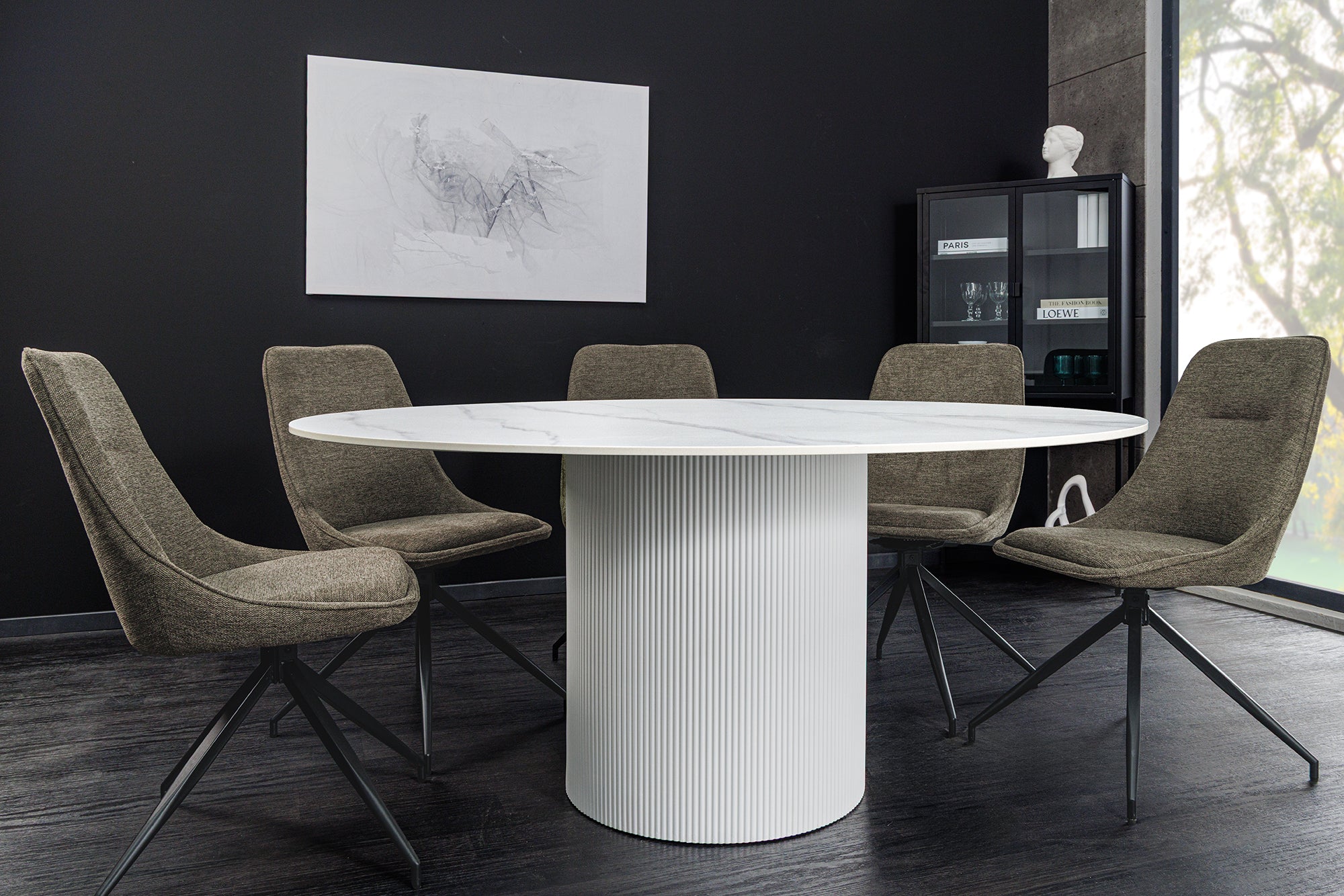 Nowoczesny stół jadalniany marki Invicta Interior, który łączy minimalistyczną białą konstrukcję z eleganckim ceramicznym blatem o marmurowym wyglądzie. Jasna kolorystyka optycznie powiększa przestrzeń i nadaje wnętrzu lekkości, dzięki czemu model doskonale sprawdzi się w mniejszych jadalniach, kuchniach oraz nowoczesnych aranżacjach.