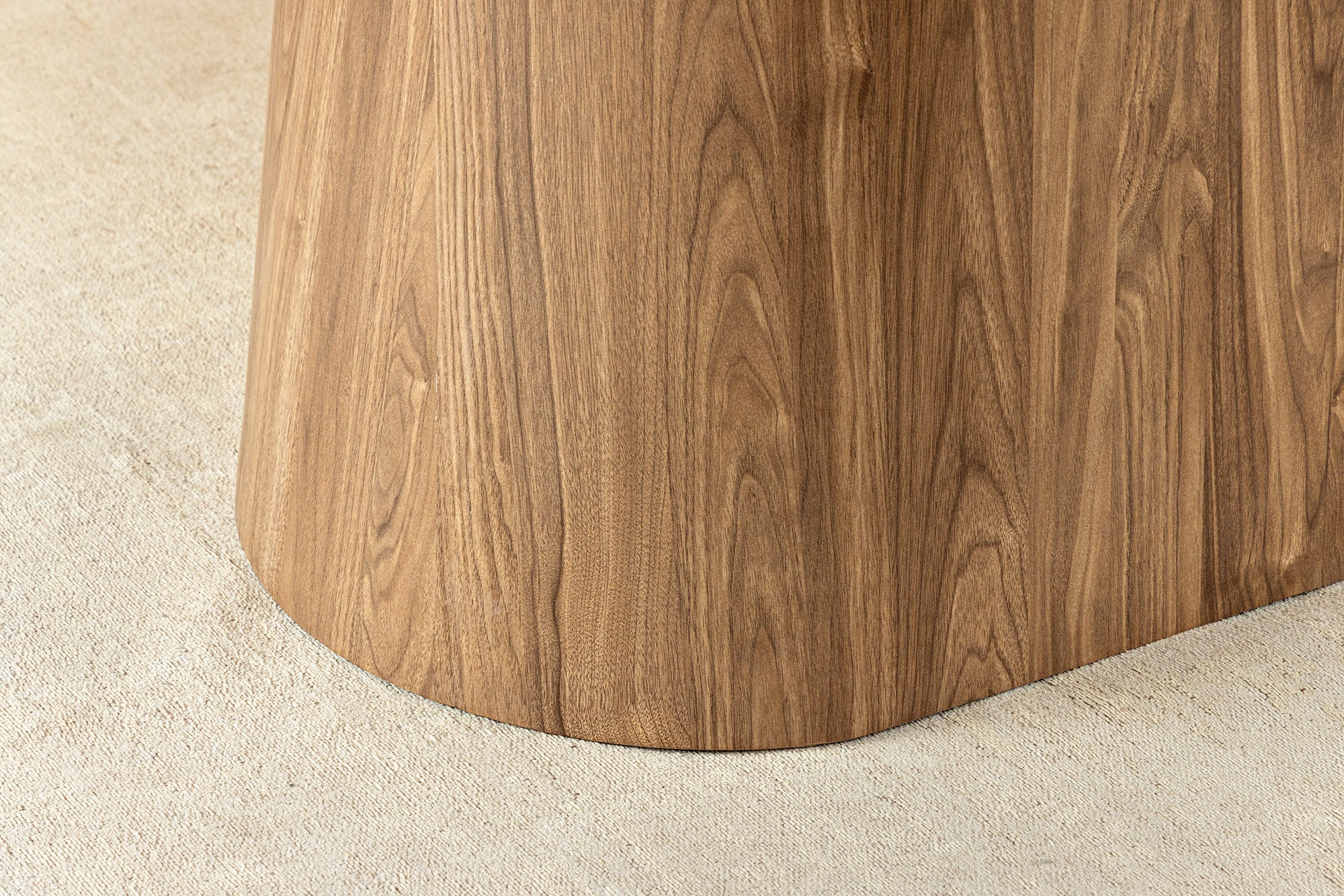 Elegancki stół jadalniany marki Invicta Interior, który łączy naturalny dekor fornirowanego drewna orzechowego z nowoczesnym ceramicznym blatem o efekcie szarego marmuru. Owalny kształt zapewnia wygodniejsze ustawienie krzeseł i większy komfort podczas wspólnych posiłków niż klasyczne stoły prostokątne.