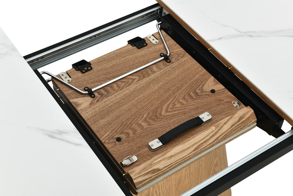 Elegancki i praktyczny stół jadalniany marki Invicta Interior, który łączy naturalne piękno fornirowanego dębu z wysokiej jakości ceramicznym blatem o białym, marmurowym wyglądzie. Funkcja rozkładania od 160 cm do 200 cm zapewnia dodatkową przestrzeń, dzięki czemu stół świetnie sprawdzi się zarówno podczas codziennych posiłków, jak i większych spotkań rodzinnych czy przyjęć.