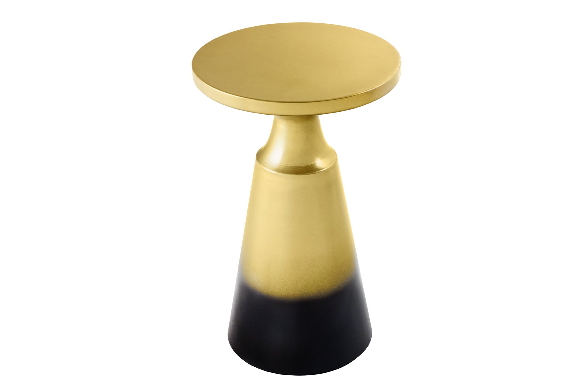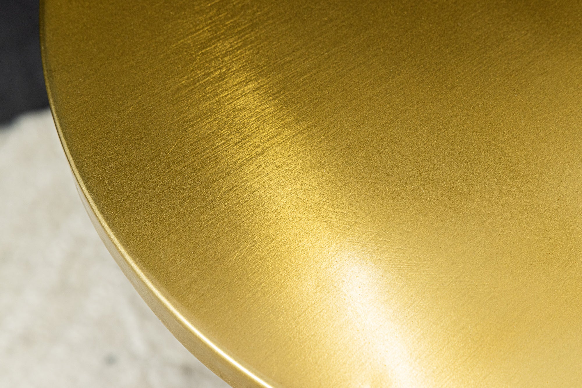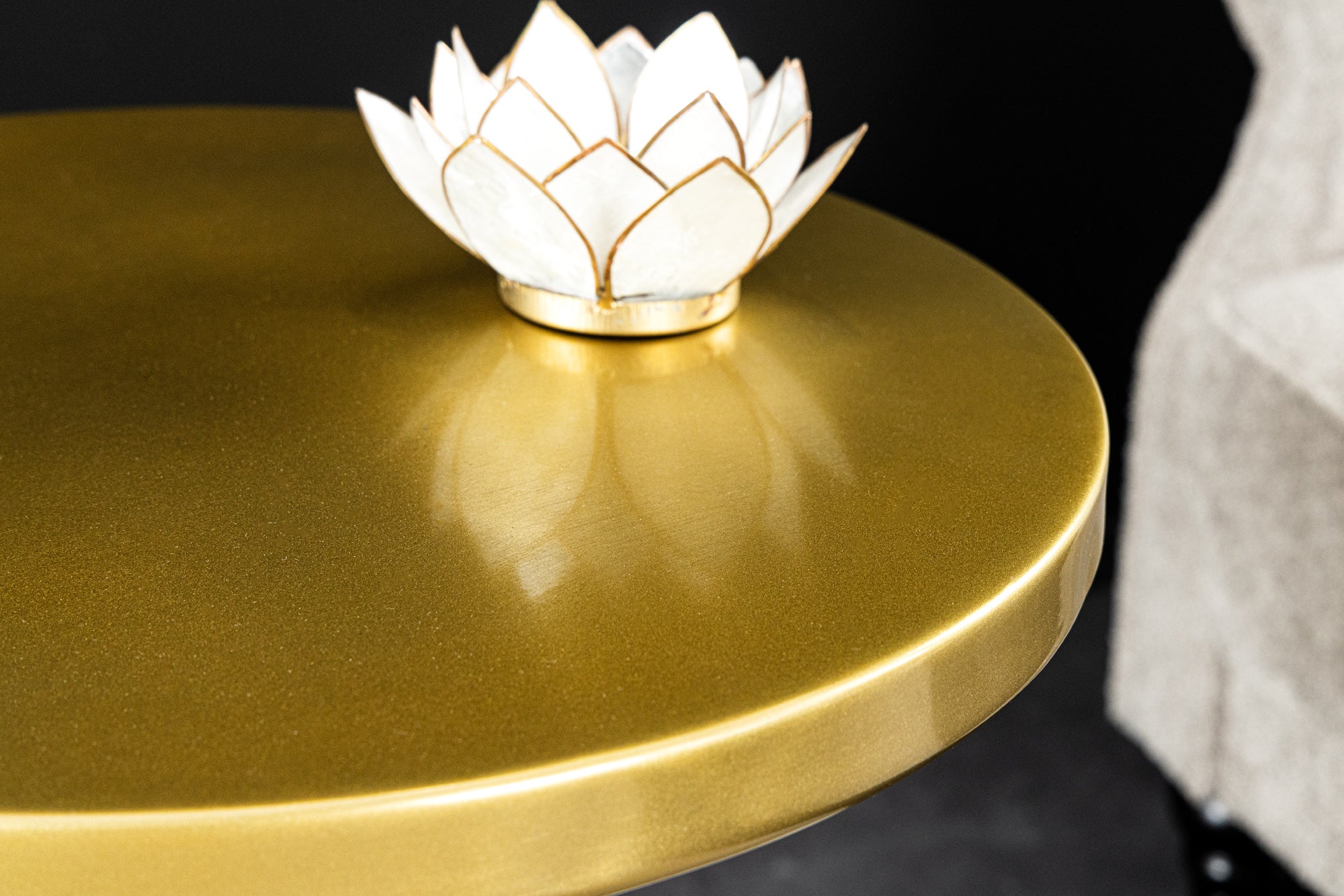 Dekoracyjny stolik boczny marki Invicta Interior o rzeźbiarskiej formie i efektownym wykończeniu w kolorze złotym z patyną. Artystyczny charakter mebla sprawia, że pełni on zarówno funkcję praktyczną, jak i ozdobną.