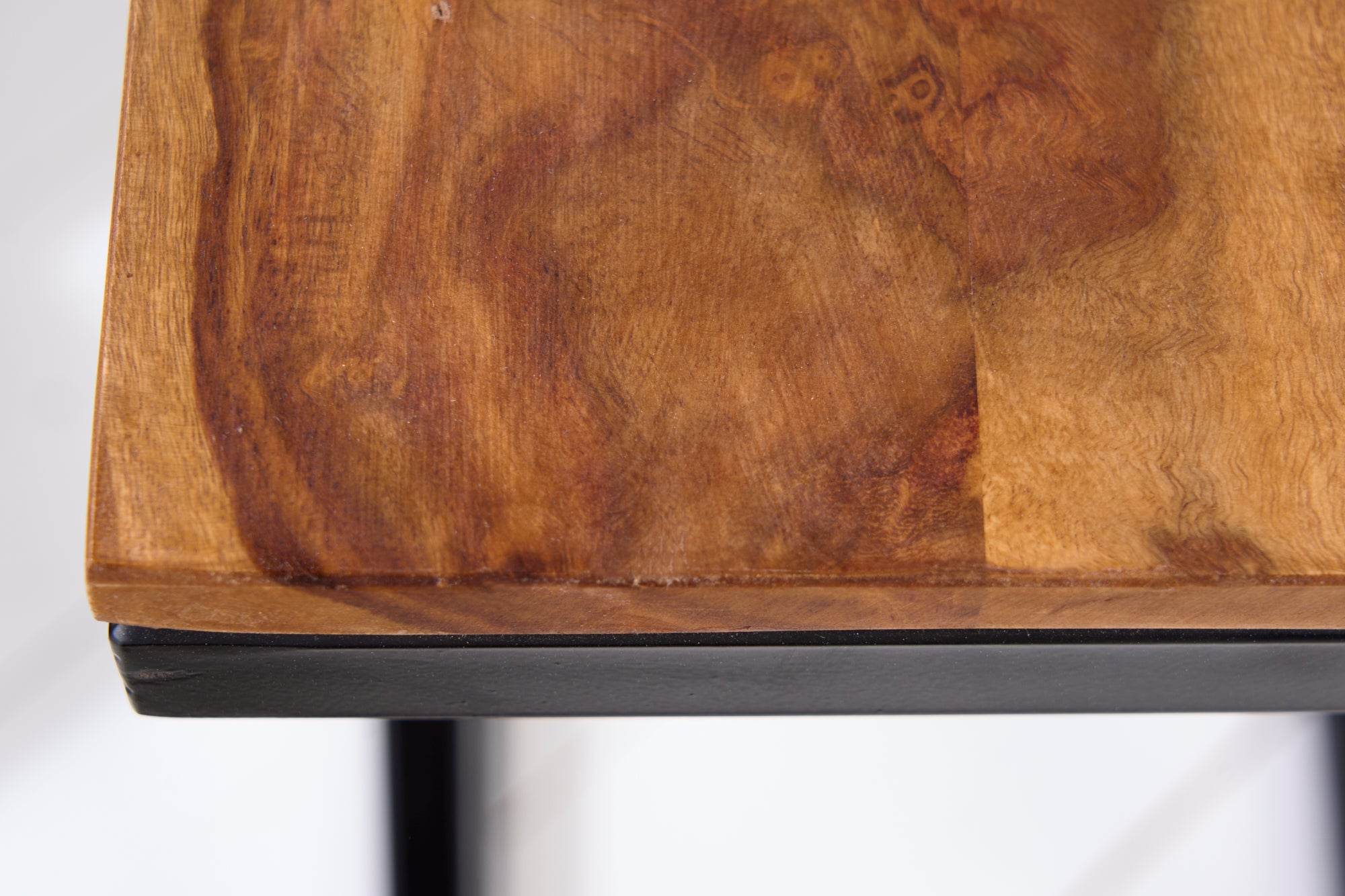 Kompaktowy stolik pomocniczy marki Invicta Interior wykonany z litego drewna sheesham (palisander indyjski). Charakterystyczna podstawa w kształcie litery Z nadaje meblowi nowoczesny wygląd i pozwala wygodnie wsunąć go pod kanapę lub fotel.
