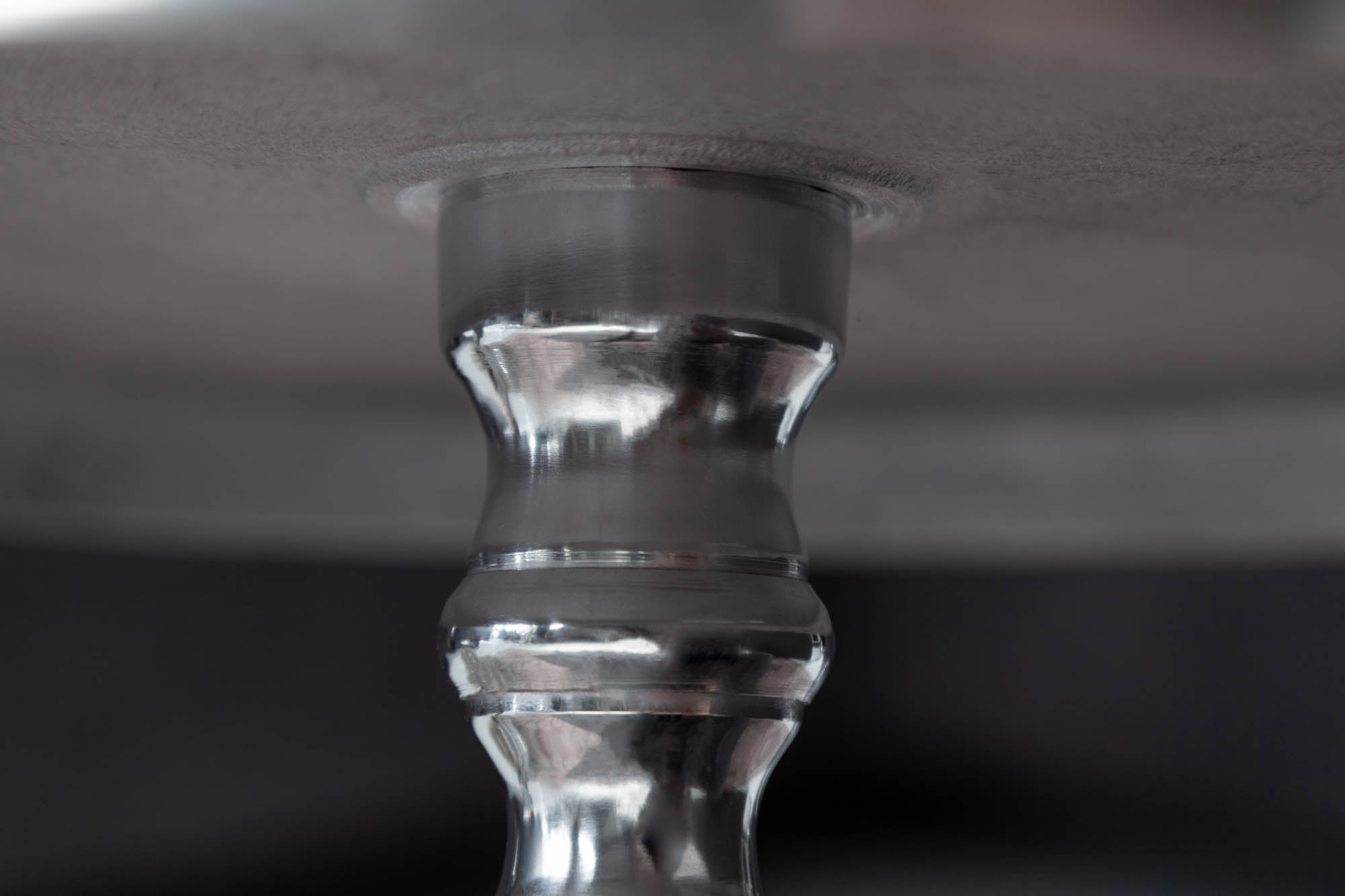 Produkt wykonany jest z polerowanego aluminium, dlatego mogą występować drobne nierówności, ślady ręcznego wykończenia lub różnice w strukturze powierzchni. Są to naturalne cechy procesu produkcji i podkreślają unikalny charakter mebla.