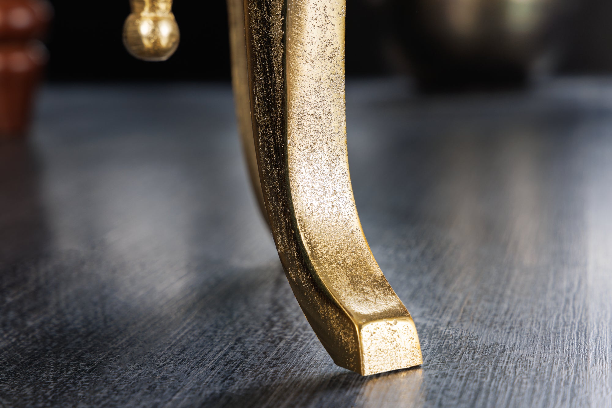 Dekoracyjny stolik pomocniczy marki Invicta Interior utrzymany w stylu barokowym z metalową, złotą konstrukcją i okrągłym blatem. Subtelne zdobienia i połyskujące wykończenie przyciągają uwagę, a jednocześnie stolik zachowuje praktyczną funkcję jako powierzchnia na napój, książkę czy dekorację.