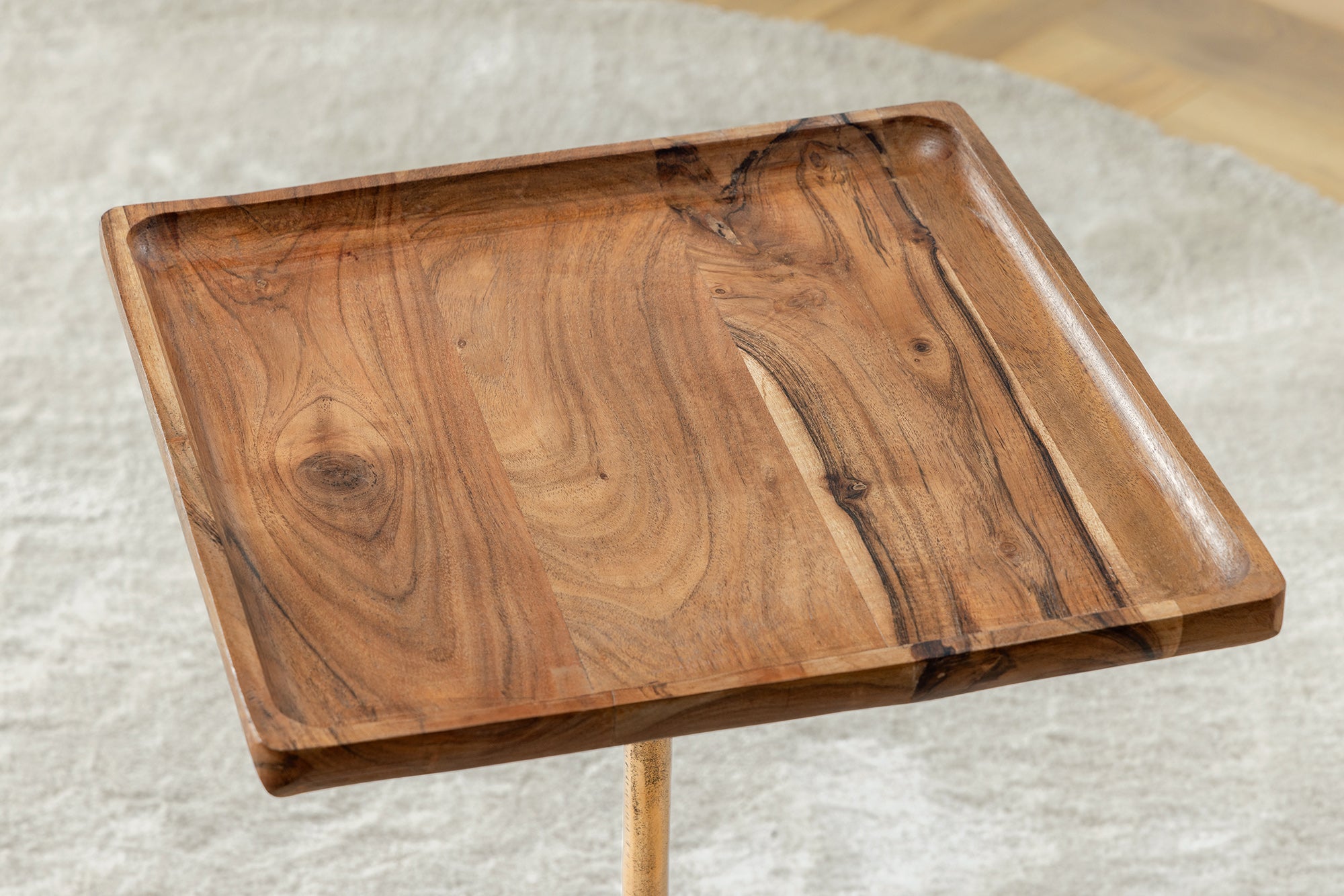 Elegancki stolik boczny marki Invicta Interior, łączący naturalne materiały z funkcjonalnym designem. Kwadratowy blat wykonany z litego drewna akacjowego zapewnia trwałą i estetyczną powierzchnię użytkową, a marmurowa podstawa dodaje całości luksusowego charakteru.
