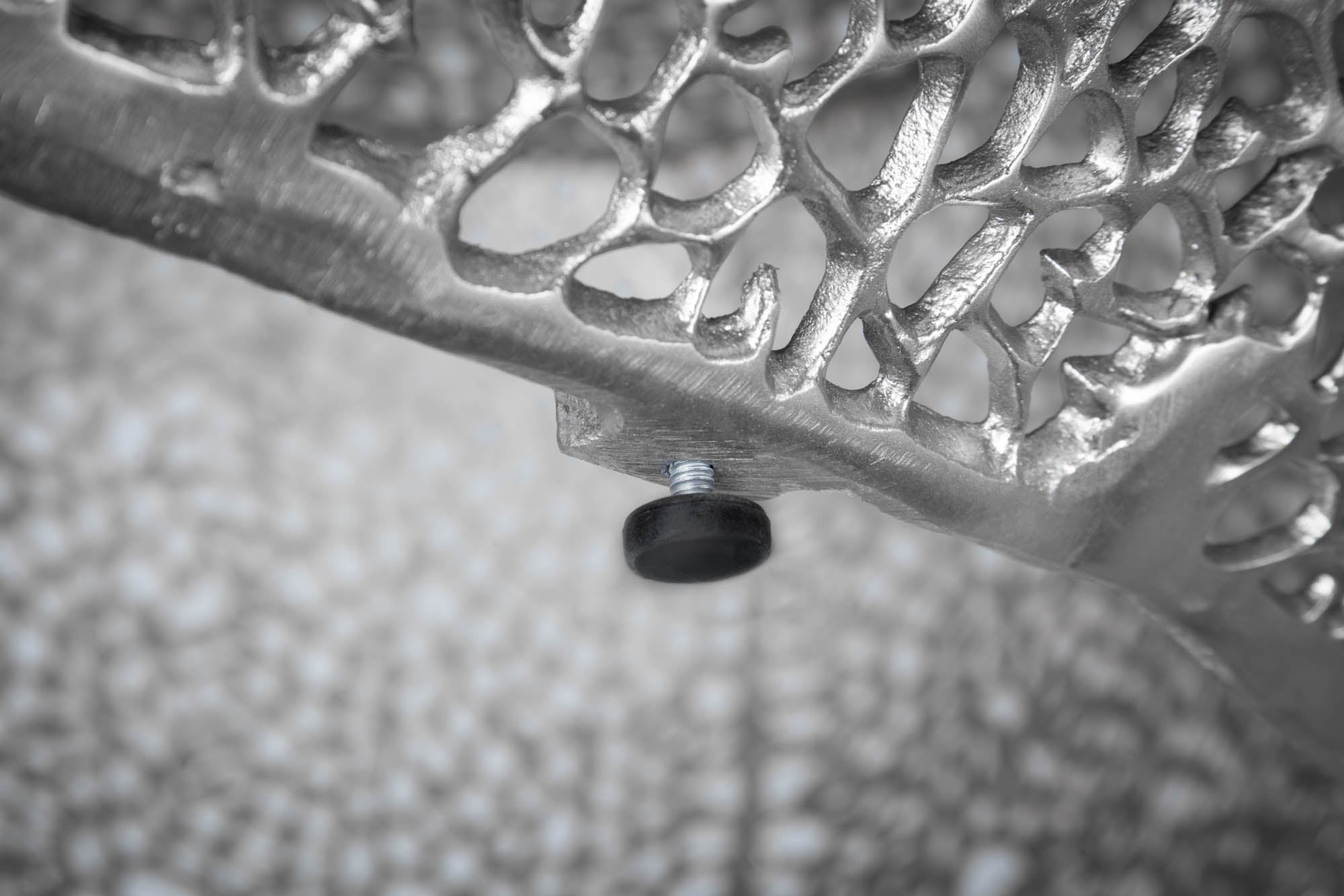 Duży, efektowny stolik kawowy o nowoczesnej, lekkiej formie, który łączy minimalistyczny design z eleganckim, srebrnym wykończeniem. Okrągły blat o średnicy 120 cm zapewnia przestronną powierzchnię użytkową, idealną do ekspozycji dekoracji, gazet, tac czy zestawu kawowego. Metalowa konstrukcja podkreśla geometryczny charakter mebla i gwarantuje stabilność.