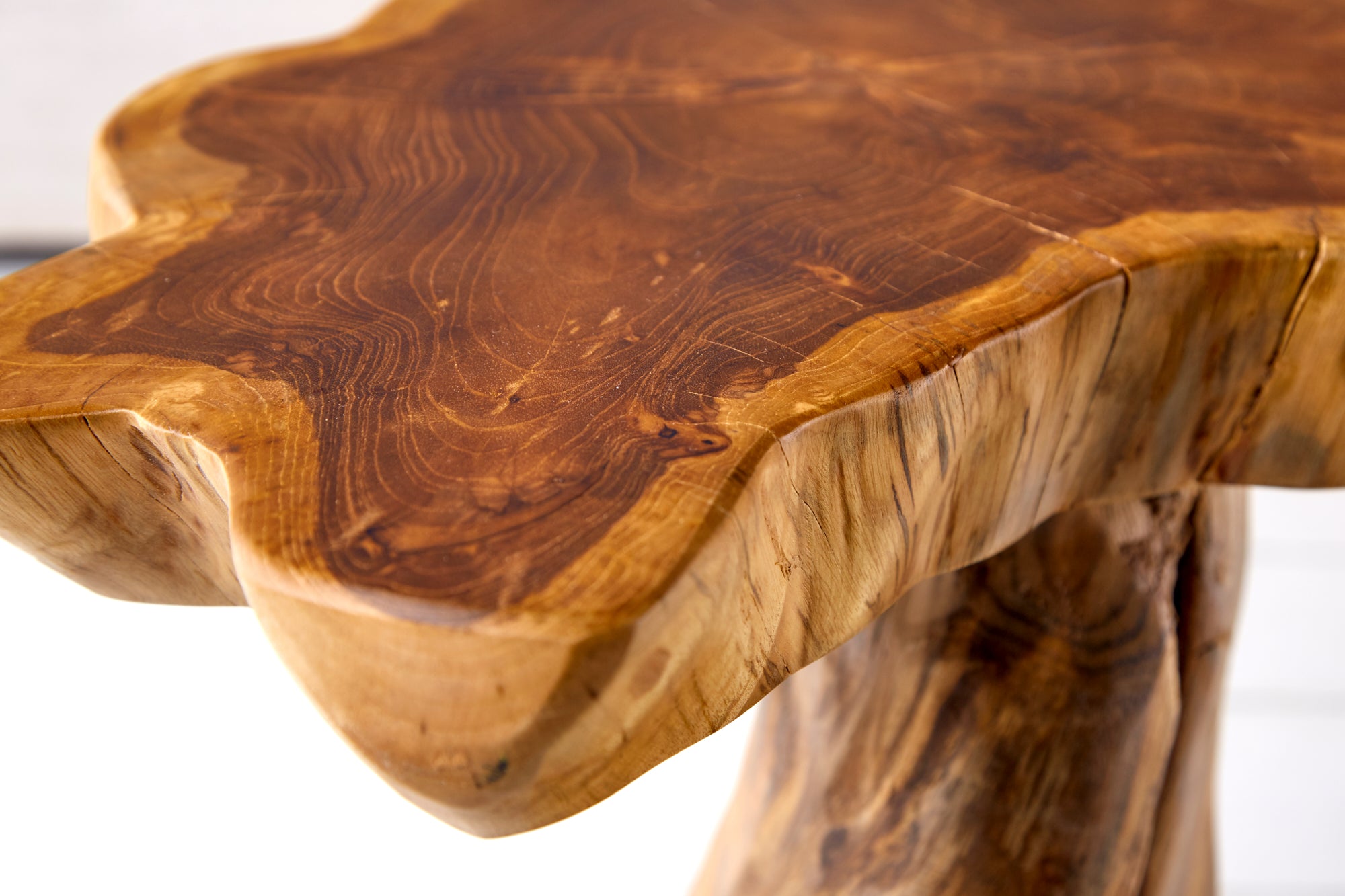 Najbardziej charakterystycznym elementem mebla jest jego forma przypominająca naturalny korzeń drzewa. Nieregularny kształt, widoczne sęki, pęknięcia i zróżnicowane usłojenie sprawiają, że każdy egzemplarz jest jedyny w swoim rodzaju. Drewno zostało zachowane w możliwie naturalnej postaci, co podkreśla jego surowy, designerski styl idealny do wnętrz loftowych, boho oraz nowoczesnych.