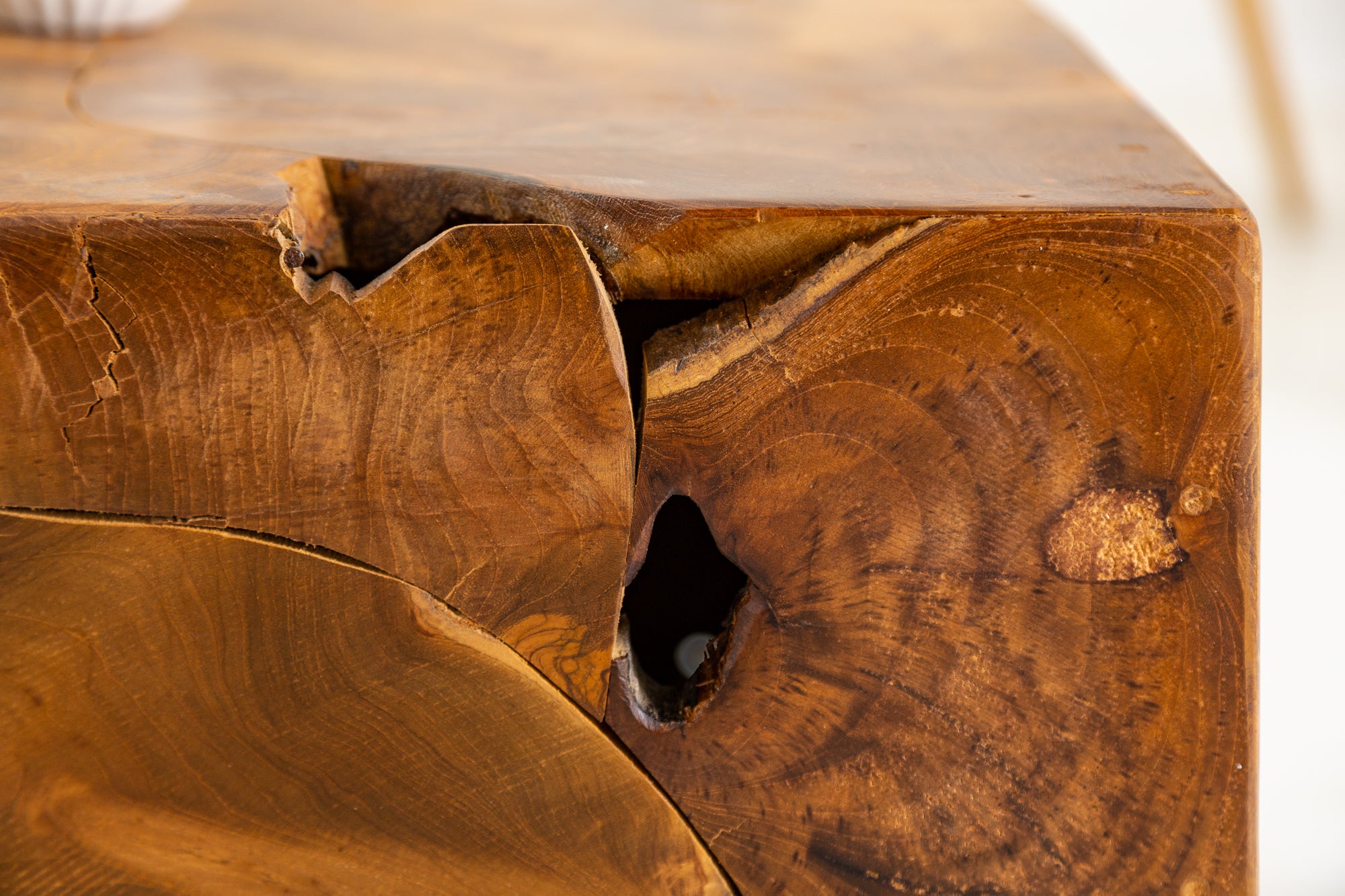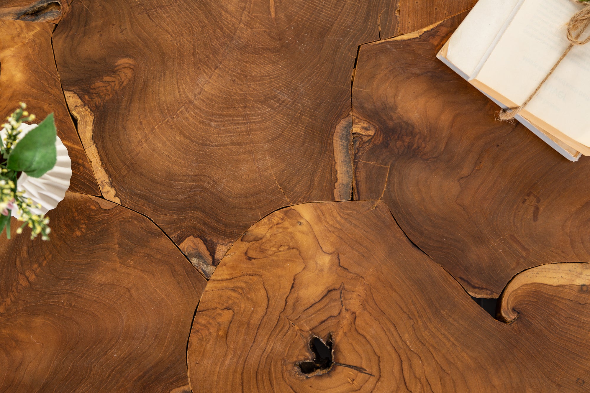 Drewno tekowe jest materiałem naturalnym, dlatego poszczególne egzemplarze mogą różnić się strukturą, odcieniem oraz układem słojów, co podkreśla unikalny charakter każdego stolika.