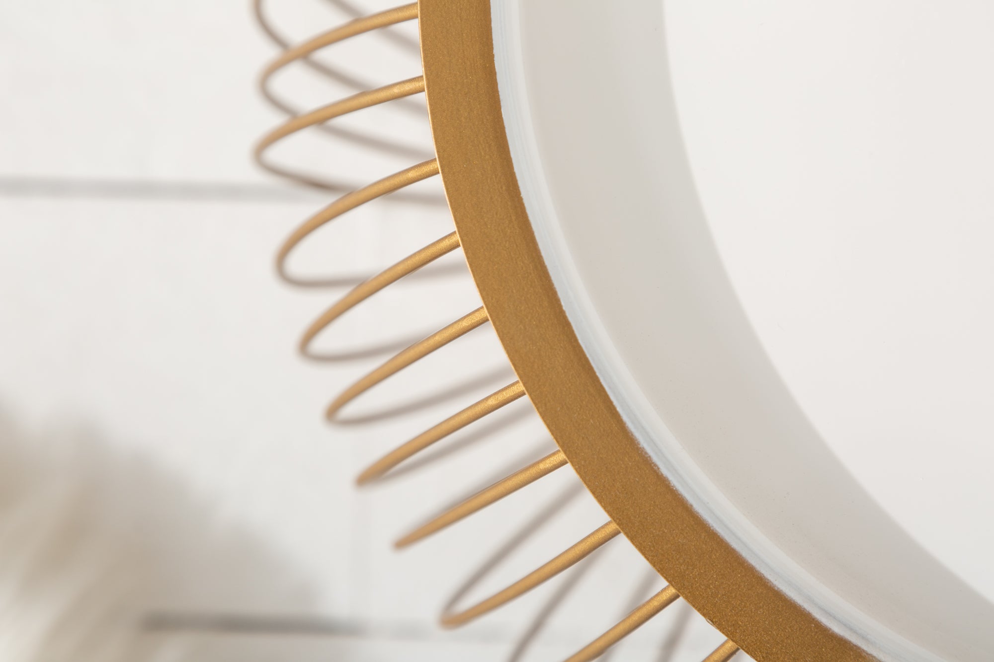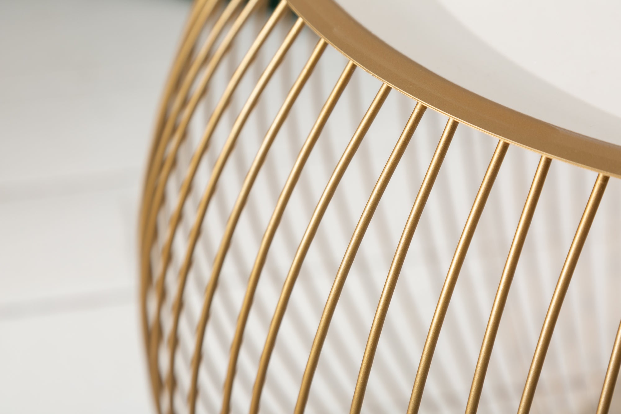 Nowoczesny stolik kawowy o kompaktowej, okrągłej formie, który łączy elegancki design z praktycznym zastosowaniem. Złota, metalowa konstrukcja nadaje mu lekkości i stylu glamour, natomiast biały, zdejmowany blat pełni funkcję wygodnej tacy.